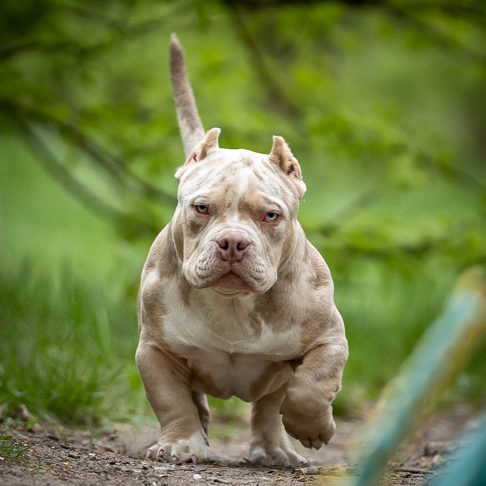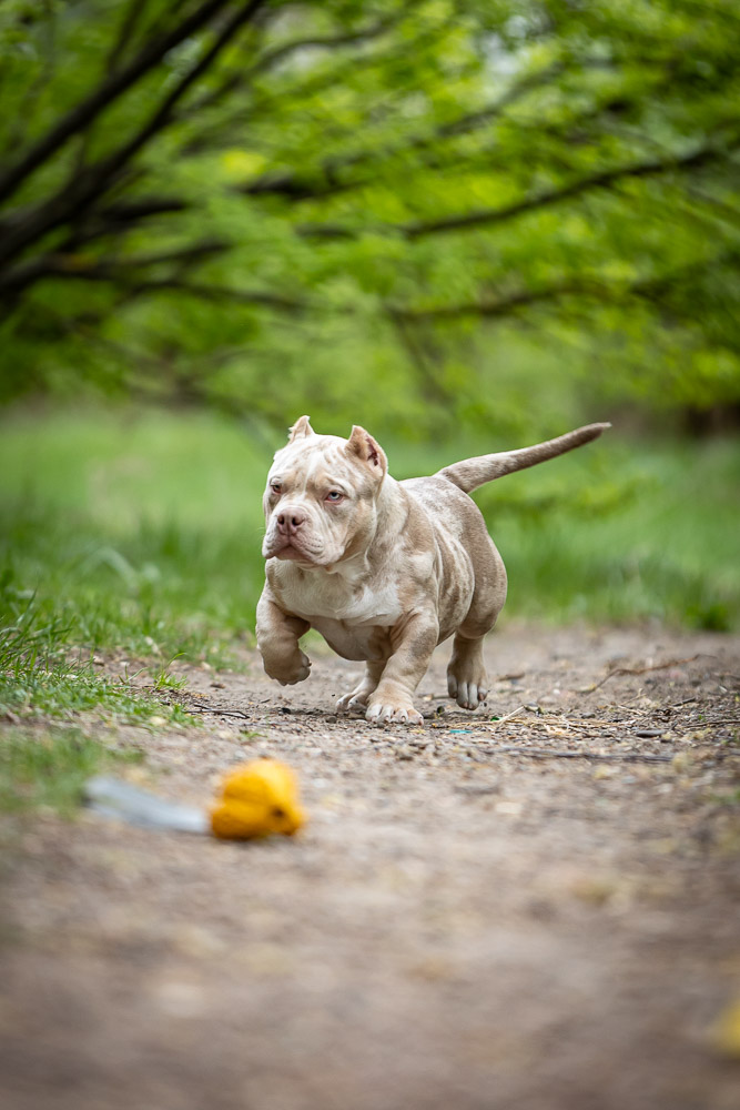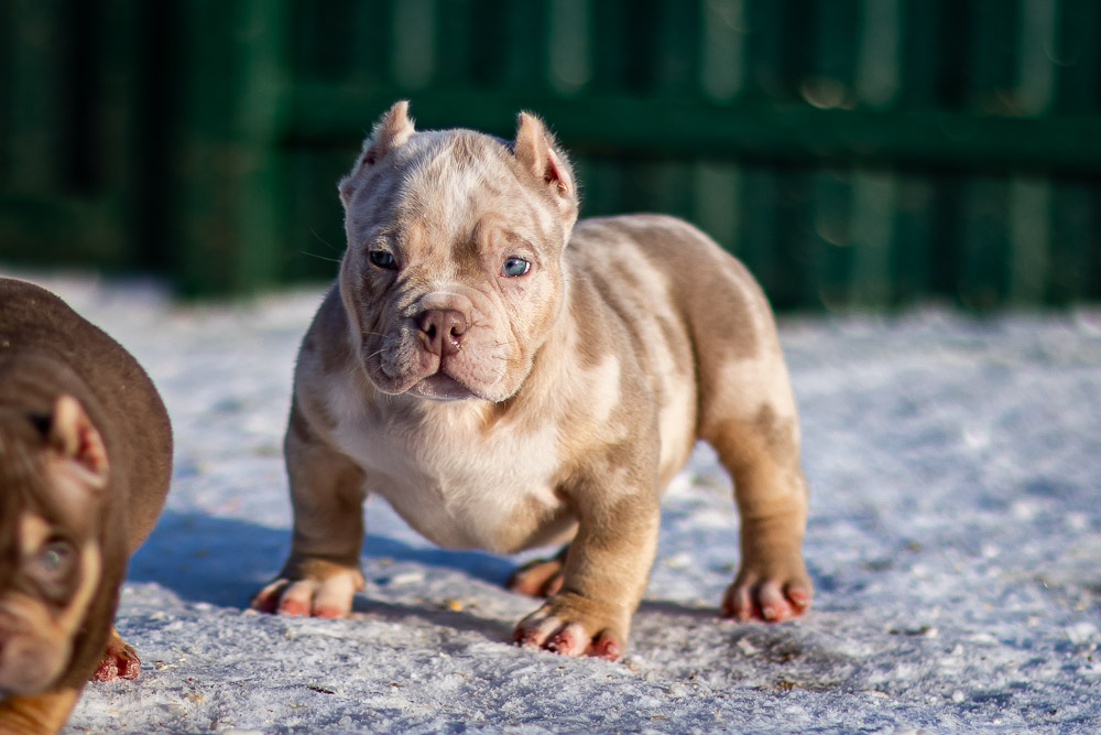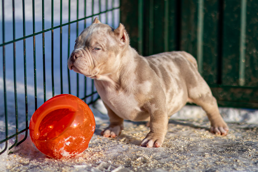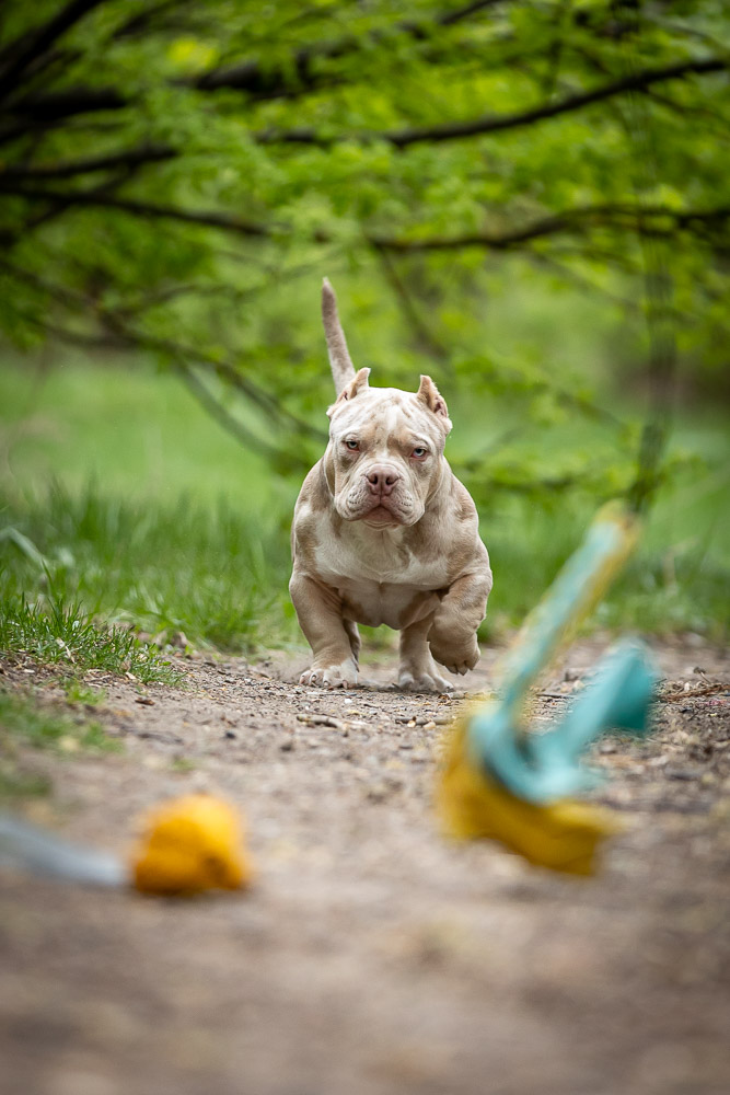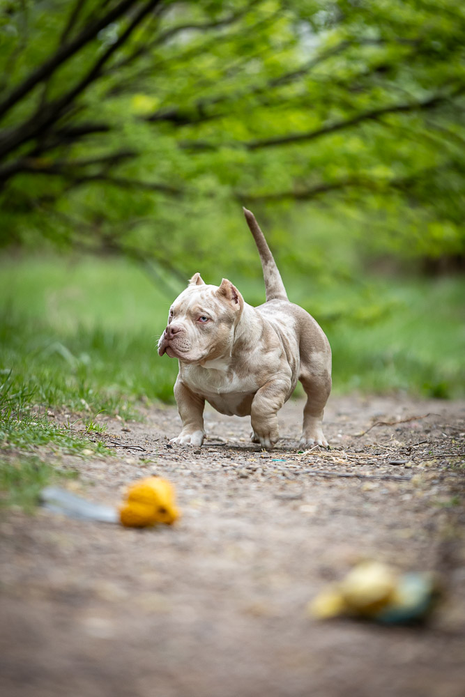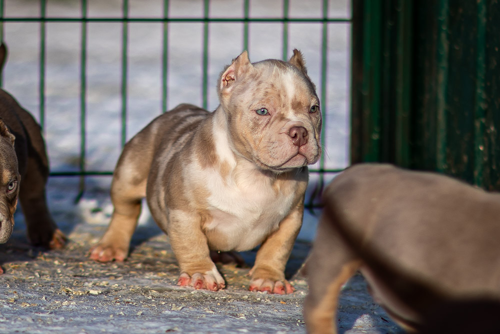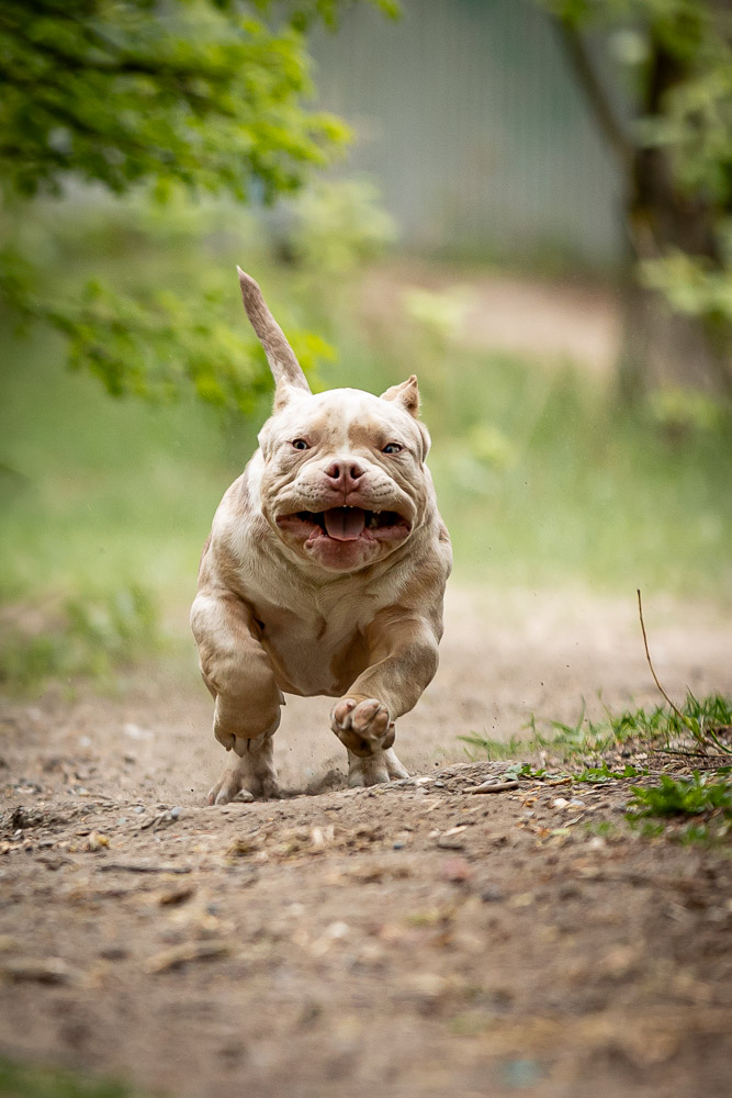 В три месяца Леон уже поражает своей мощью. Широкая грудь, которая почти касается пола, мощные плечи, ровная спина — в нём всё говорит о силе, которая с возрастом раскроется ещё больше. Но не только телосложение делает его особенным. Его голубые глаза притягивают взгляд, в них есть что-то большее, чем просто щенячье любопытство — глубина, которая завораживает.