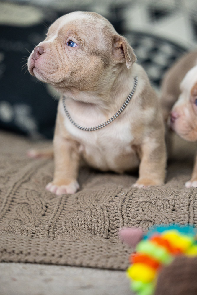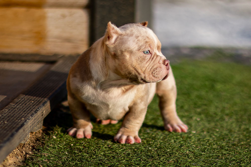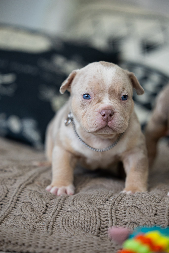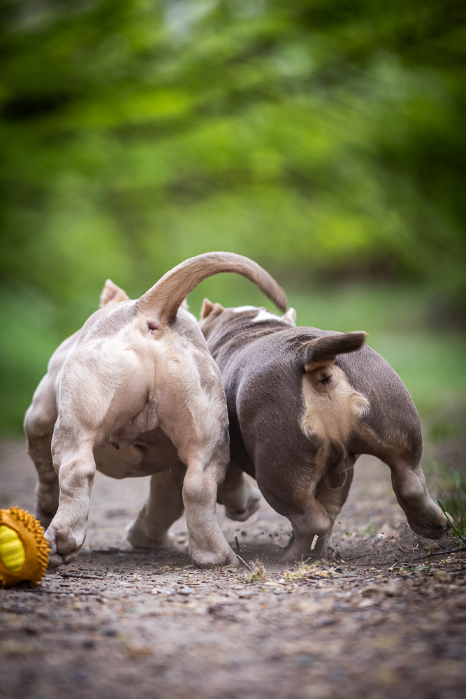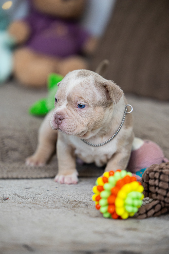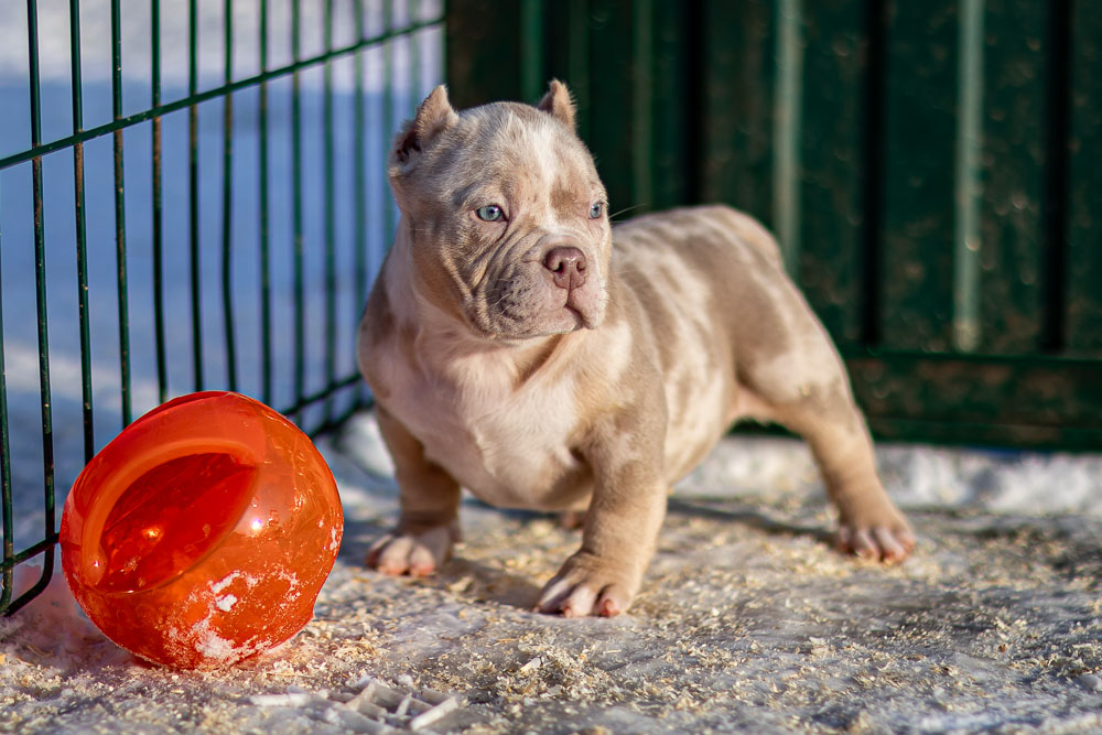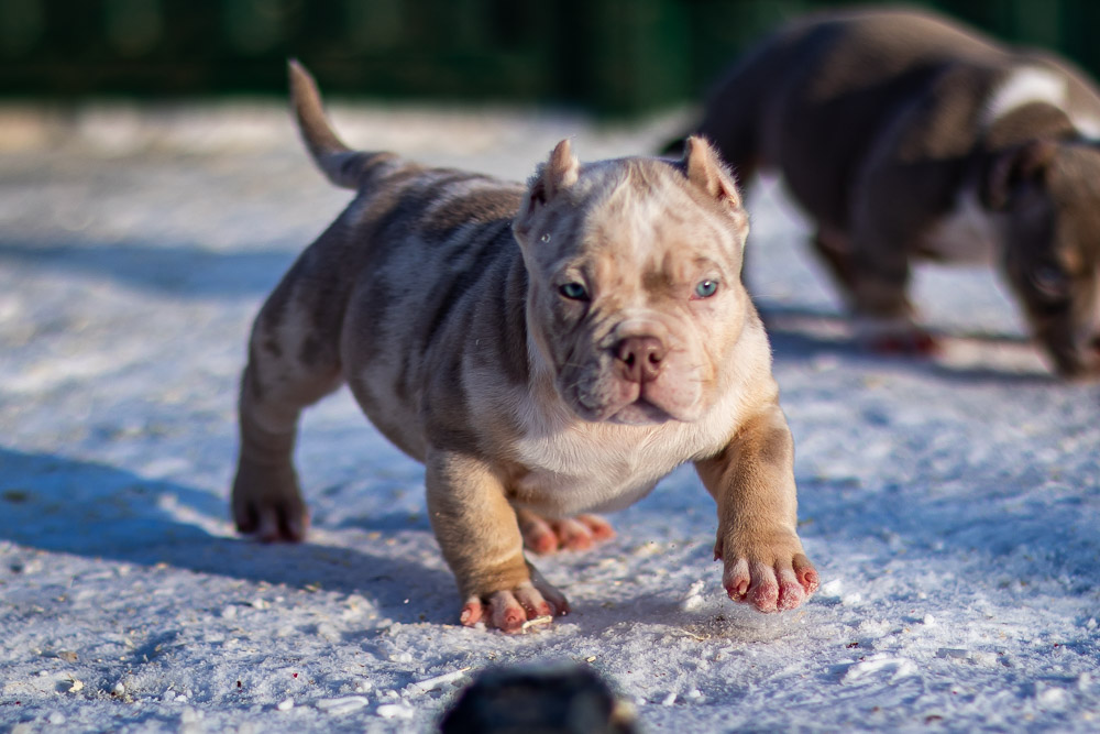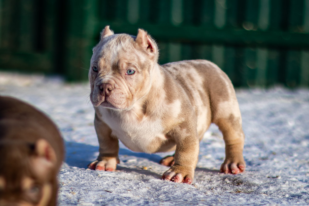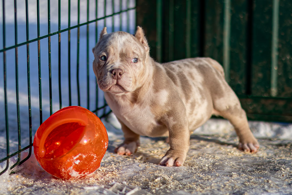 В три месяца Леон уже поражает своей мощью. Широкая грудь, которая почти касается пола, мощные плечи, ровная спина — в нём всё говорит о силе, которая с возрастом раскроется ещё больше. Но не только телосложение делает его особенным. Его голубые глаза притягивают взгляд, в них есть что-то большее, чем просто щенячье любопытство — глубина, которая завораживает.