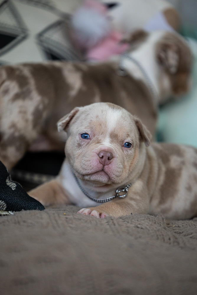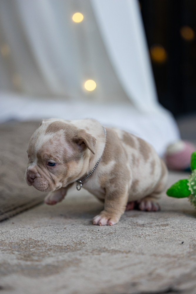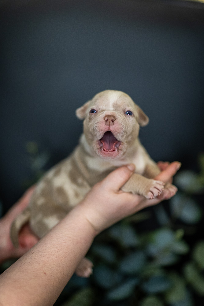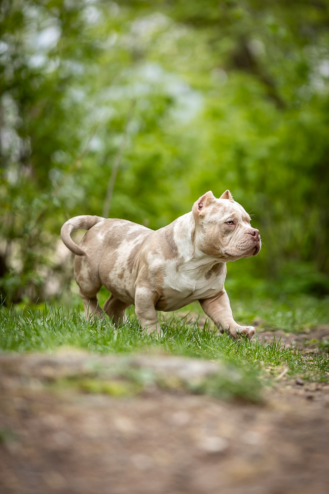 Он рождён от наших брутальных Тао и Нюши и несёт в себе не только силу и стать своих родителей, но и особенное наследие. В его жилах течёт кровь Папая, а его мерль окрас — это настоящее произведение искусства, созданное природой. Ведь каждое пятнышко на его шерсти уникально — это штрих, подчёркивающий его исключительность.