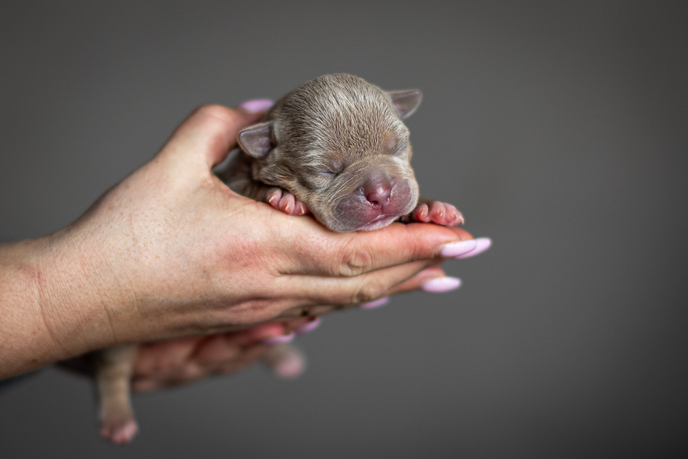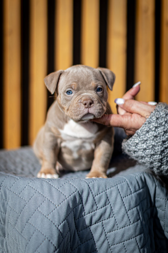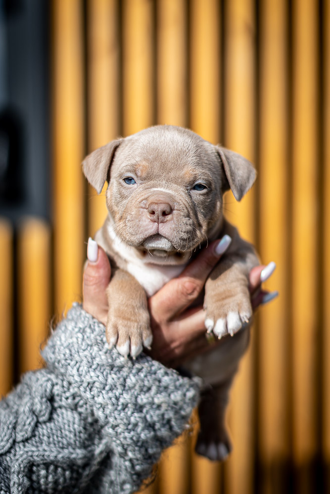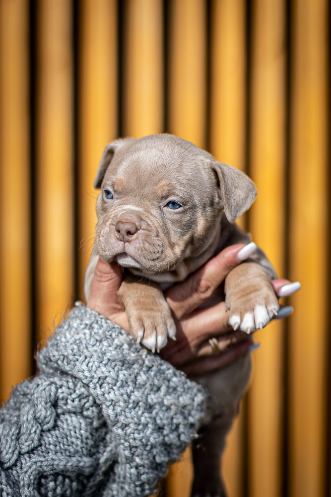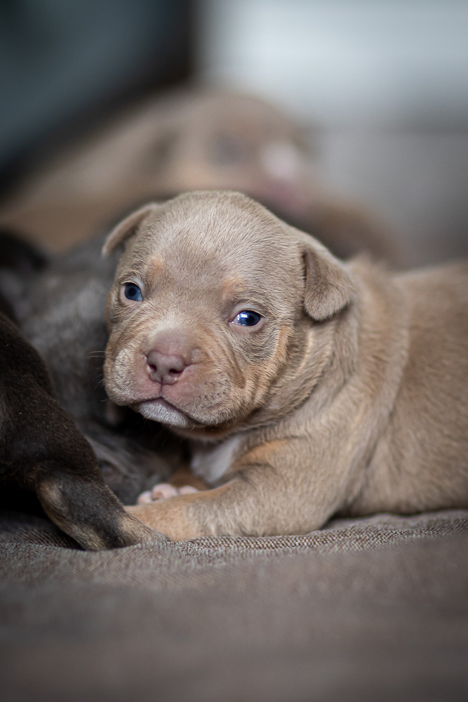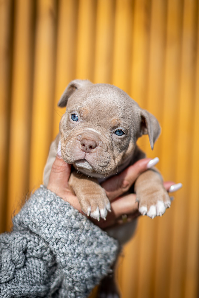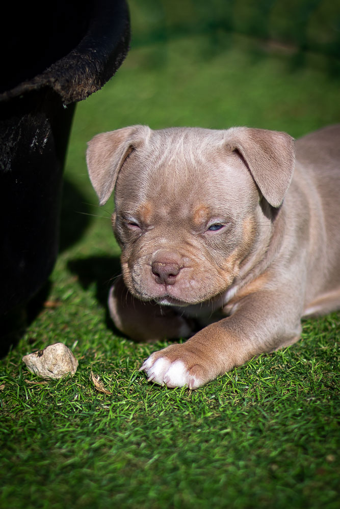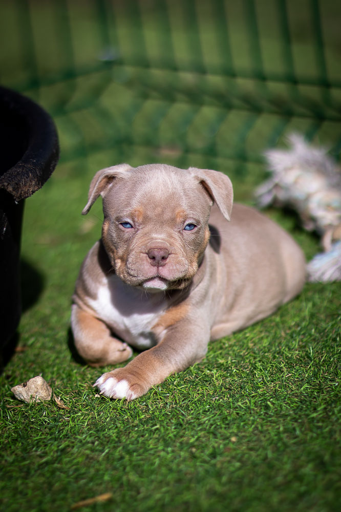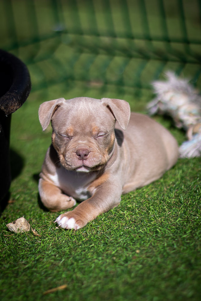 Лейла очень статный, корректный ребенок, пропорционально сложена, перспективна для шоу и племенной работы. Хорошие углы, свободные движения, хороша в стойке. Красивая, большая голова (папина). Очень ласковая, нежная, добрая. Хорошо ладит с братьями и сестрами, ориентирована на человека, заглядывает в глаза, любит сидеть на ручках и проводить время с человеком.