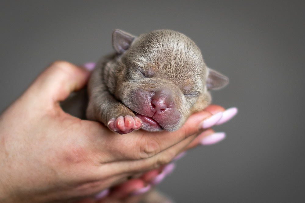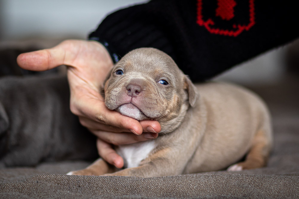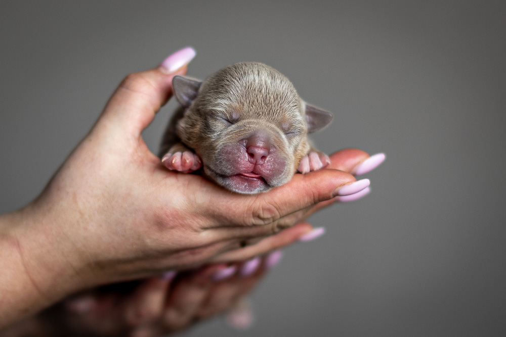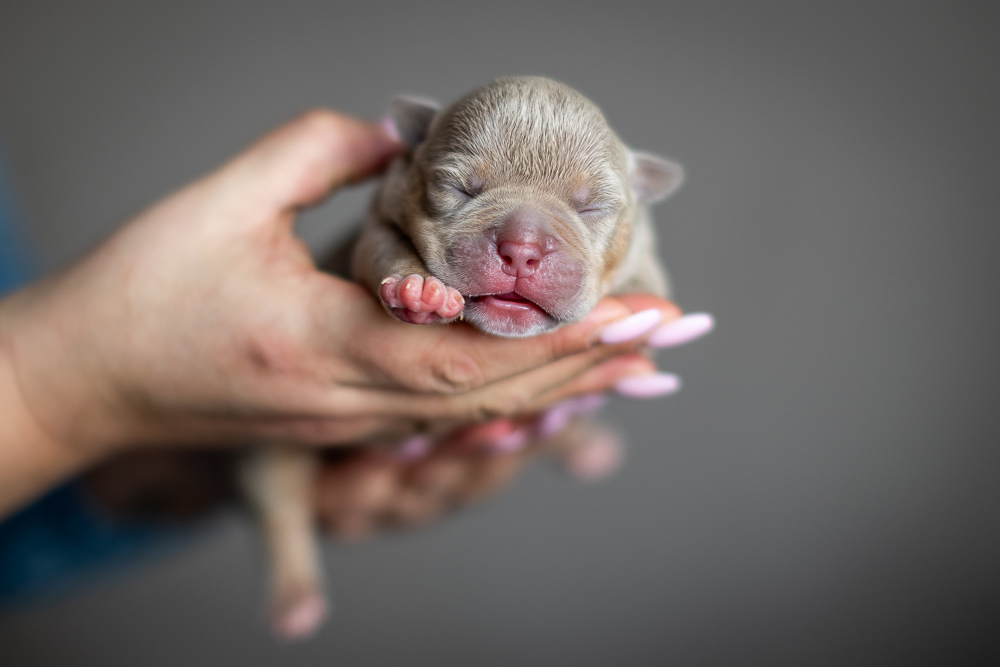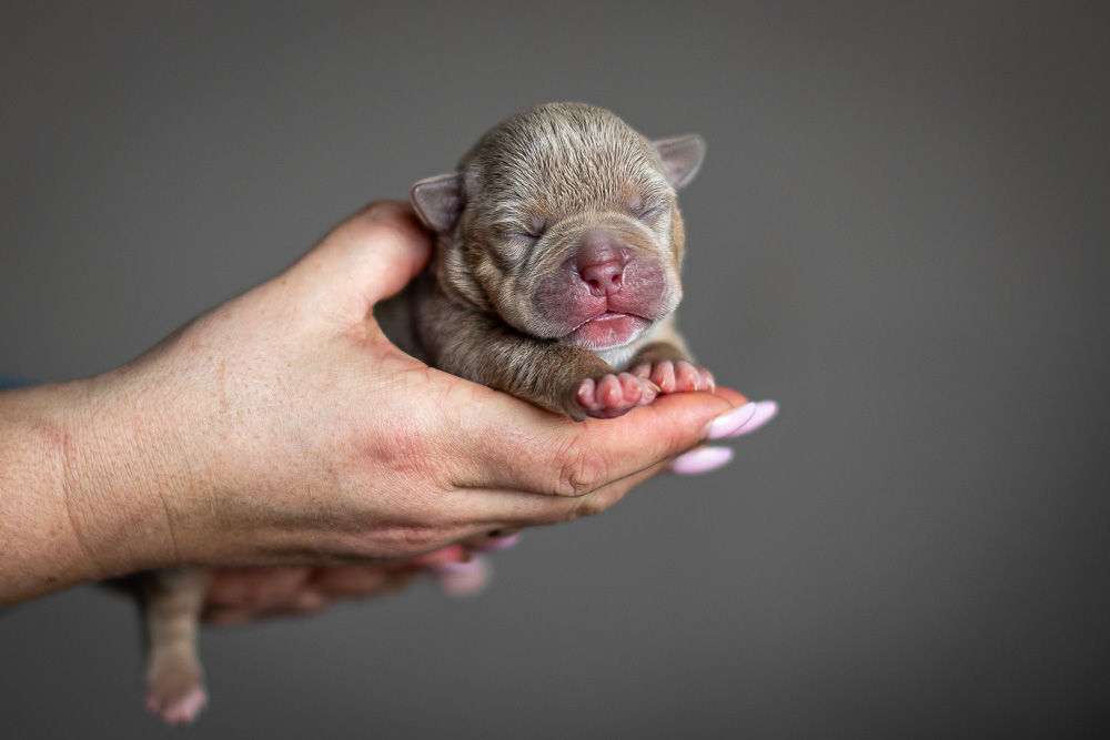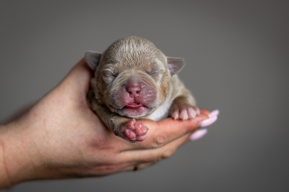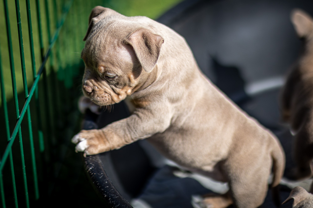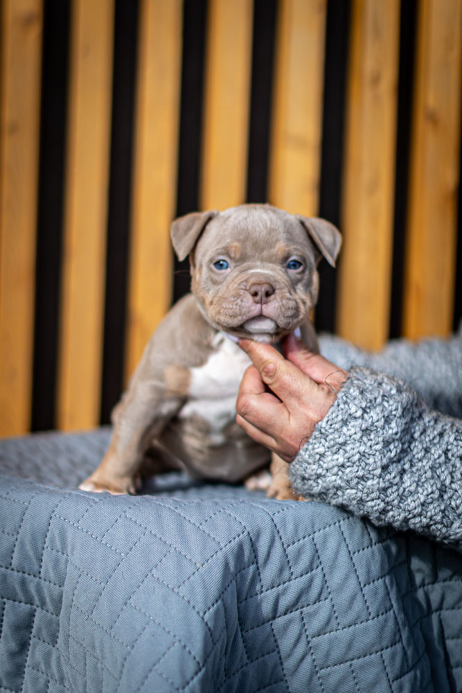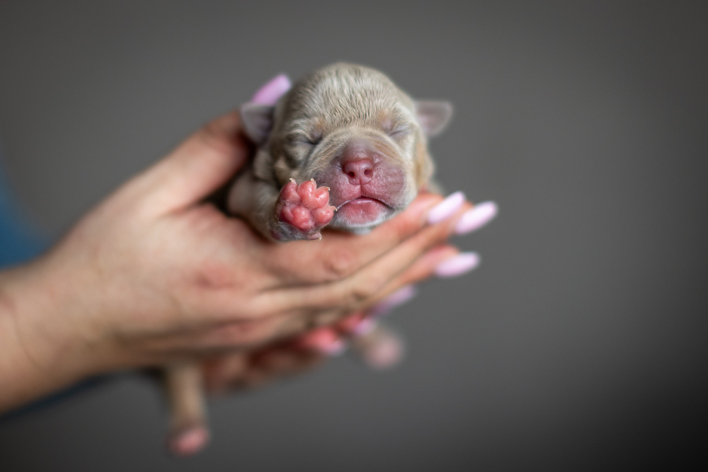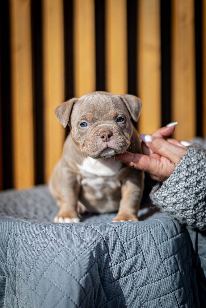 Лейла очень статный, корректный ребенок, пропорционально сложена, перспективна для шоу и племенной работы. Хорошие углы, свободные движения, хороша в стойке. Красивая, большая голова (папина). Очень ласковая, нежная, добрая. Хорошо ладит с братьями и сестрами, ориентирована на человека, заглядывает в глаза, любит сидеть на ручках и проводить время с человеком.