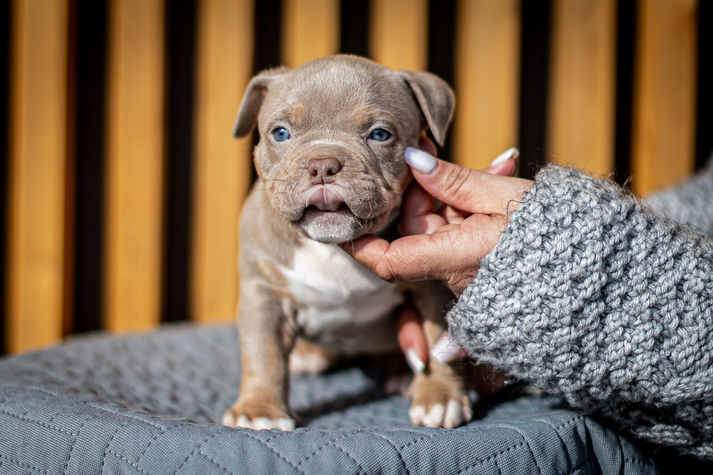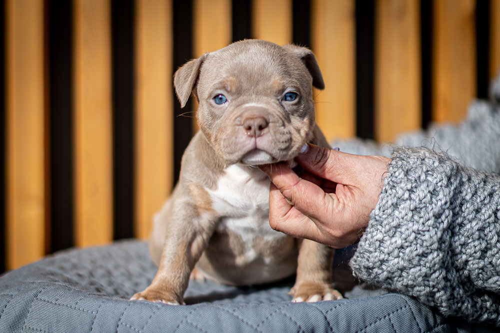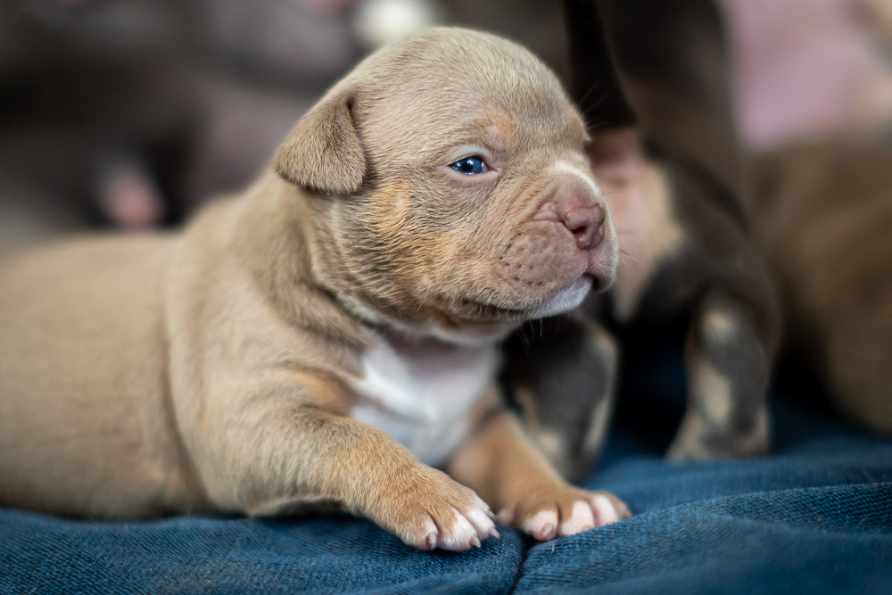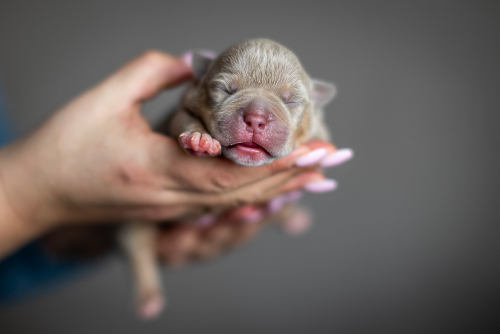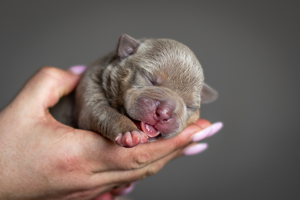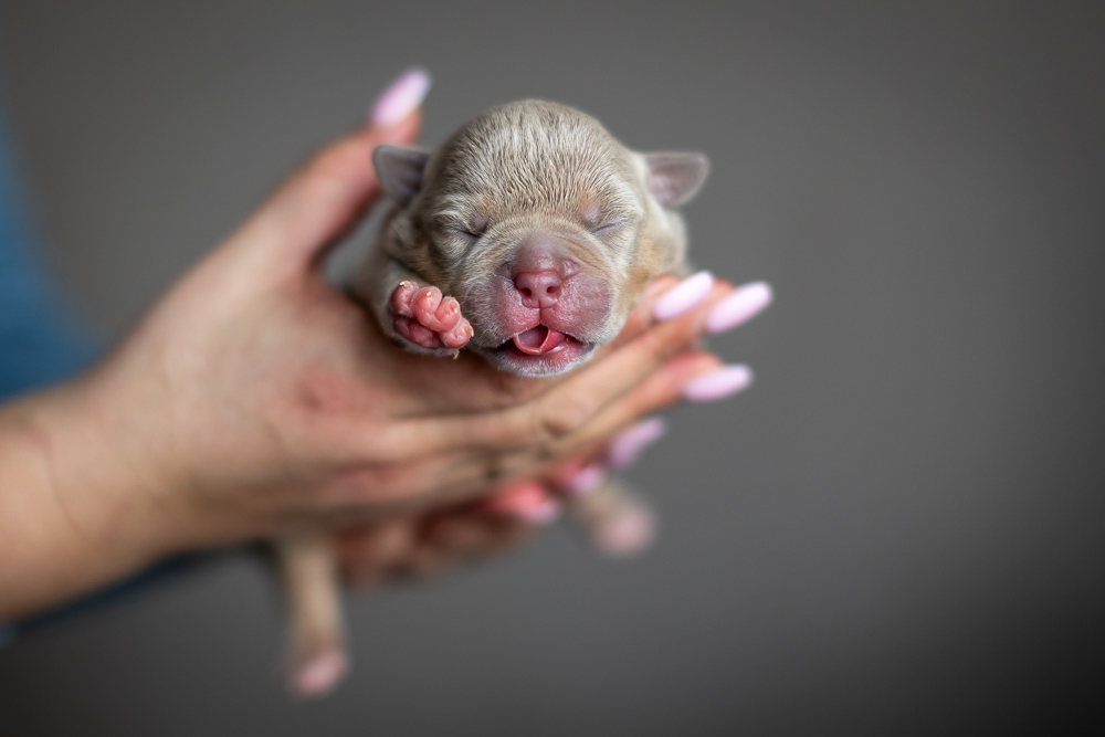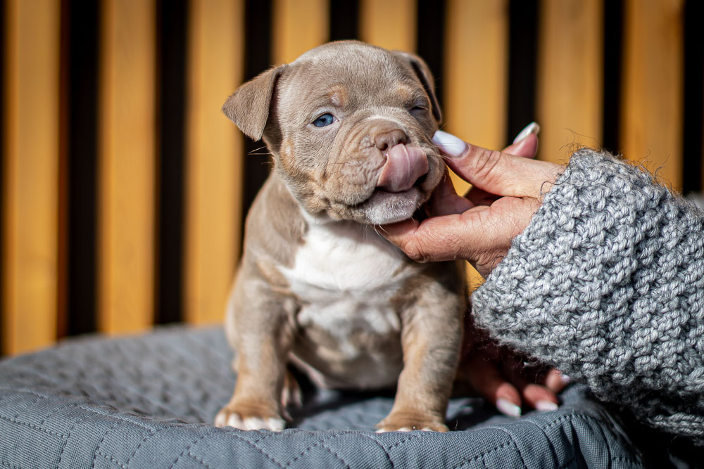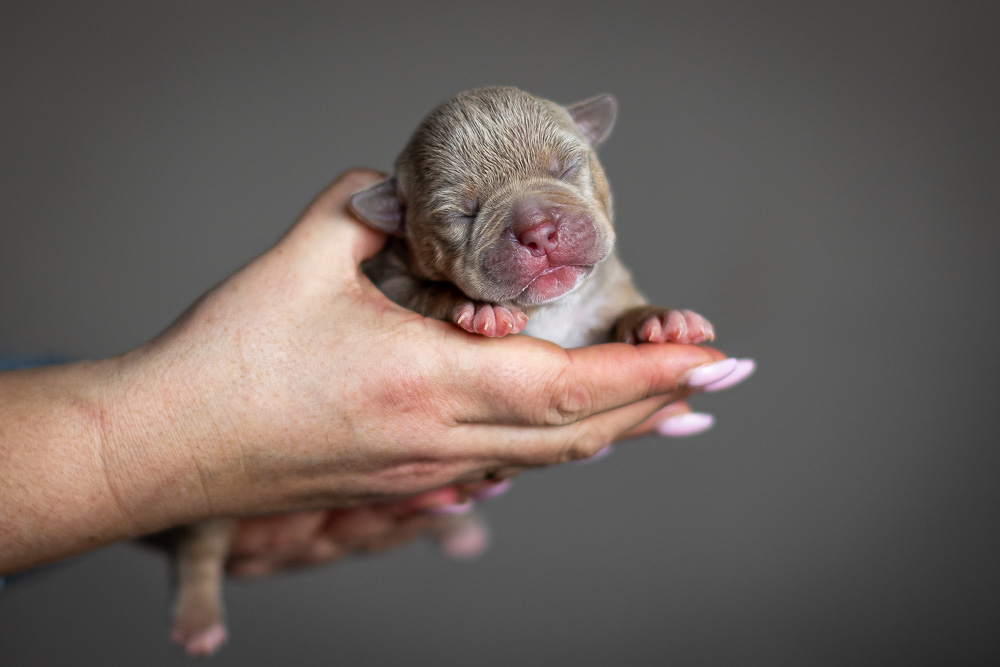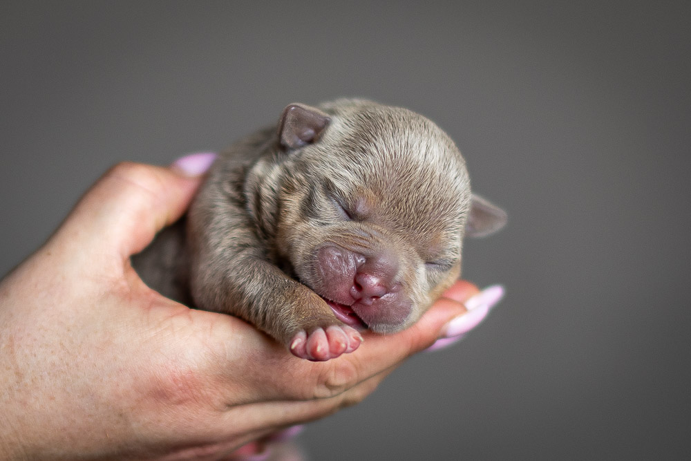 Лейла очень статный, корректный ребенок, пропорционально сложена, перспективна для шоу и племенной работы. Хорошие углы, свободные движения, хороша в стойке. Красивая, большая голова (папина). Очень ласковая, нежная, добрая. Хорошо ладит с братьями и сестрами, ориентирована на человека, заглядывает в глаза, любит сидеть на ручках и проводить время с человеком.