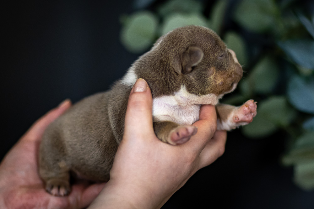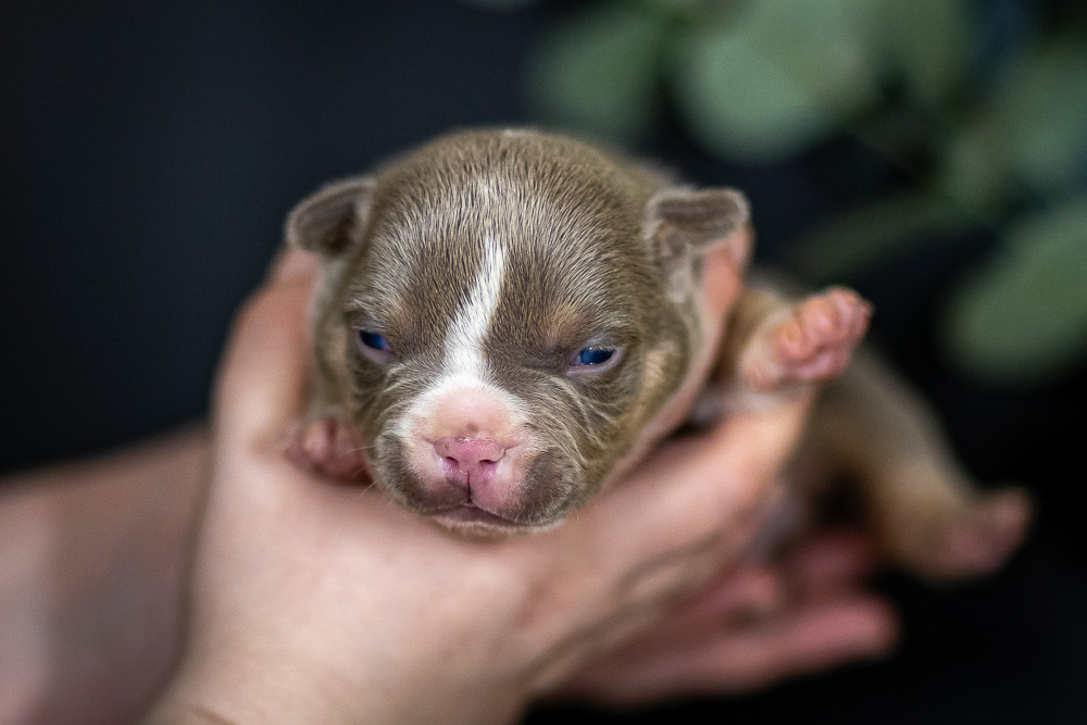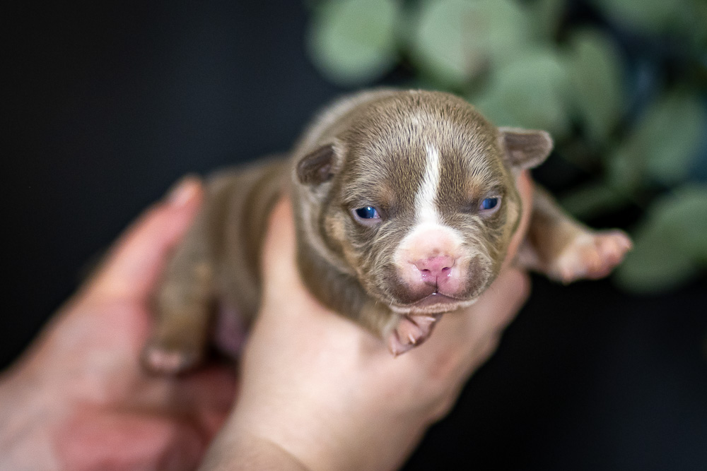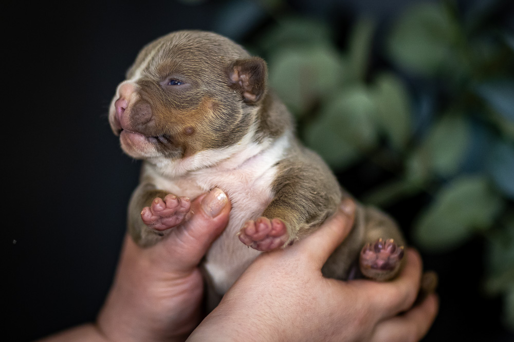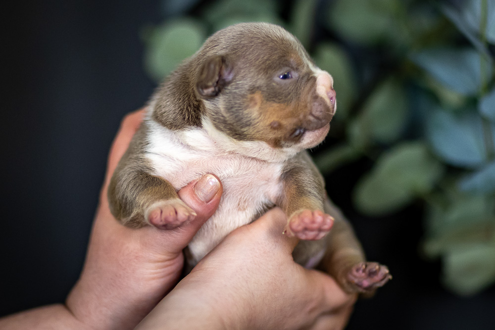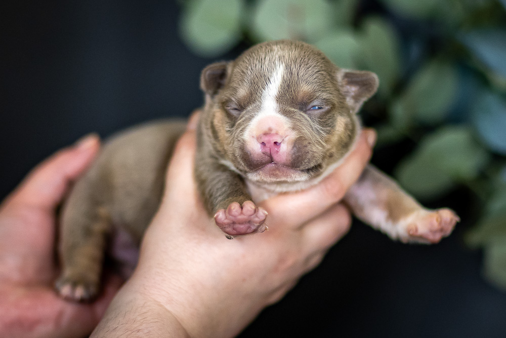 Этот малыш просто поражает своей мускулистостью, грудью и плечами. Он родился с удивительной физической структурой: очень приземистый, с массивным корпусом, который явно унаследовал от своего папы Кинки.