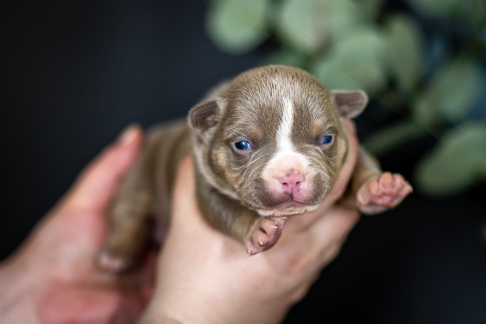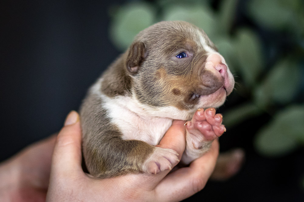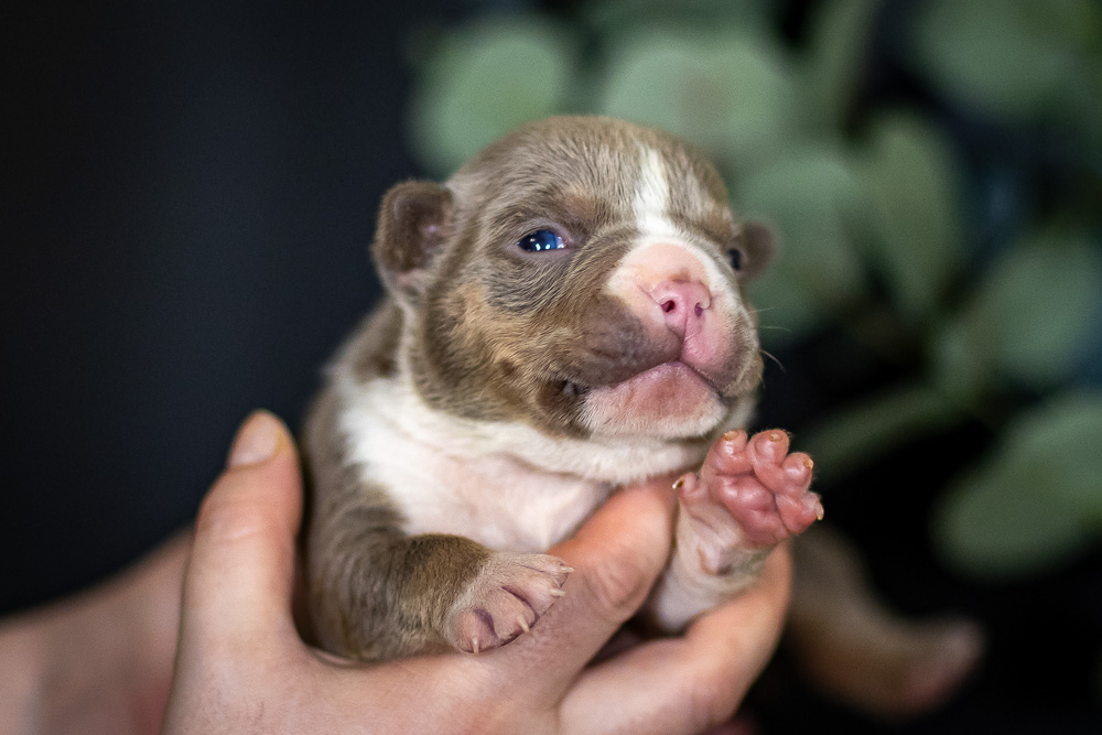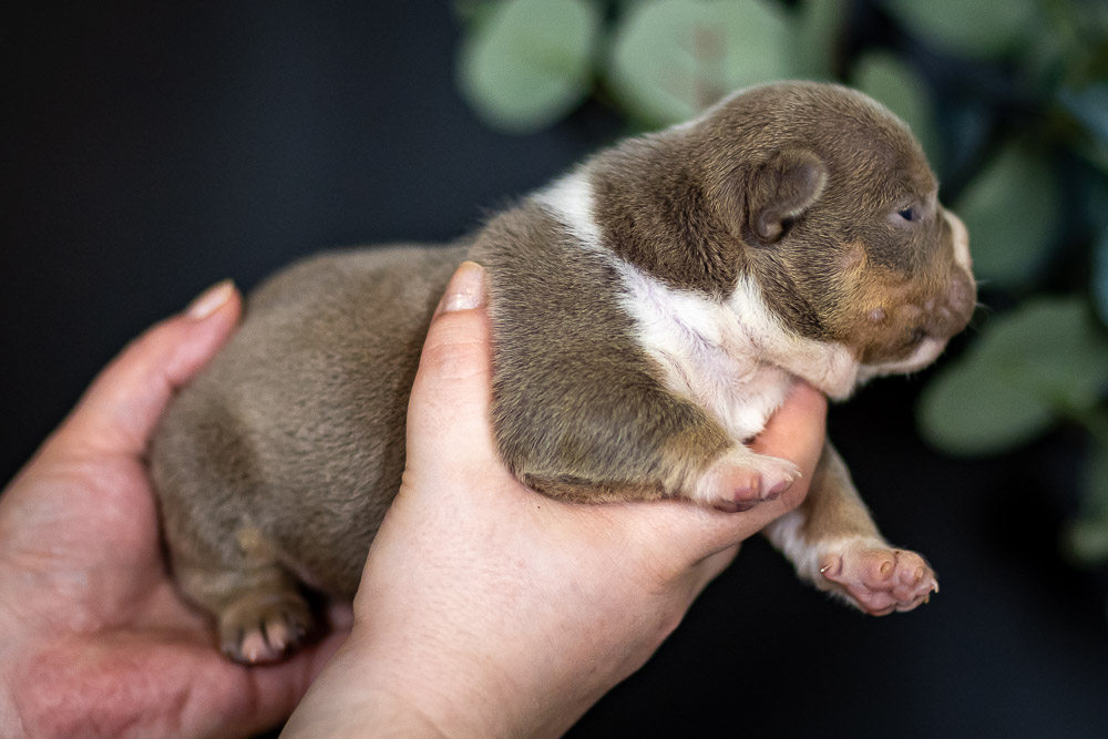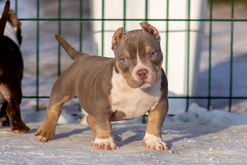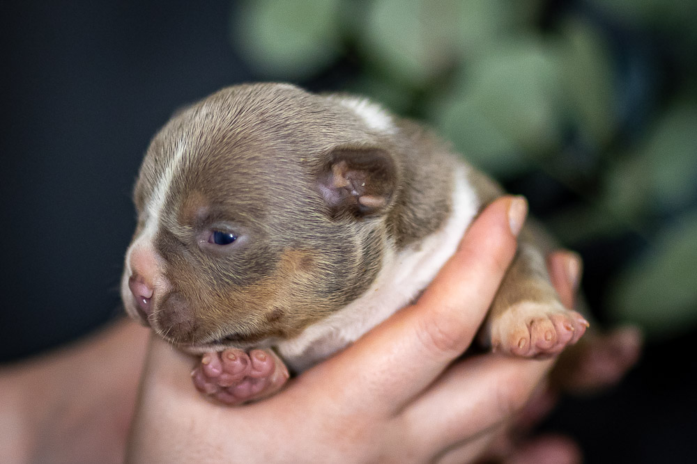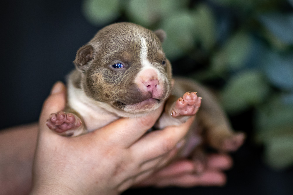 Этот малыш просто поражает своей мускулистостью, грудью и плечами. Он родился с удивительной физической структурой: очень приземистый, с массивным корпусом, который явно унаследовал от своего папы Кинки.