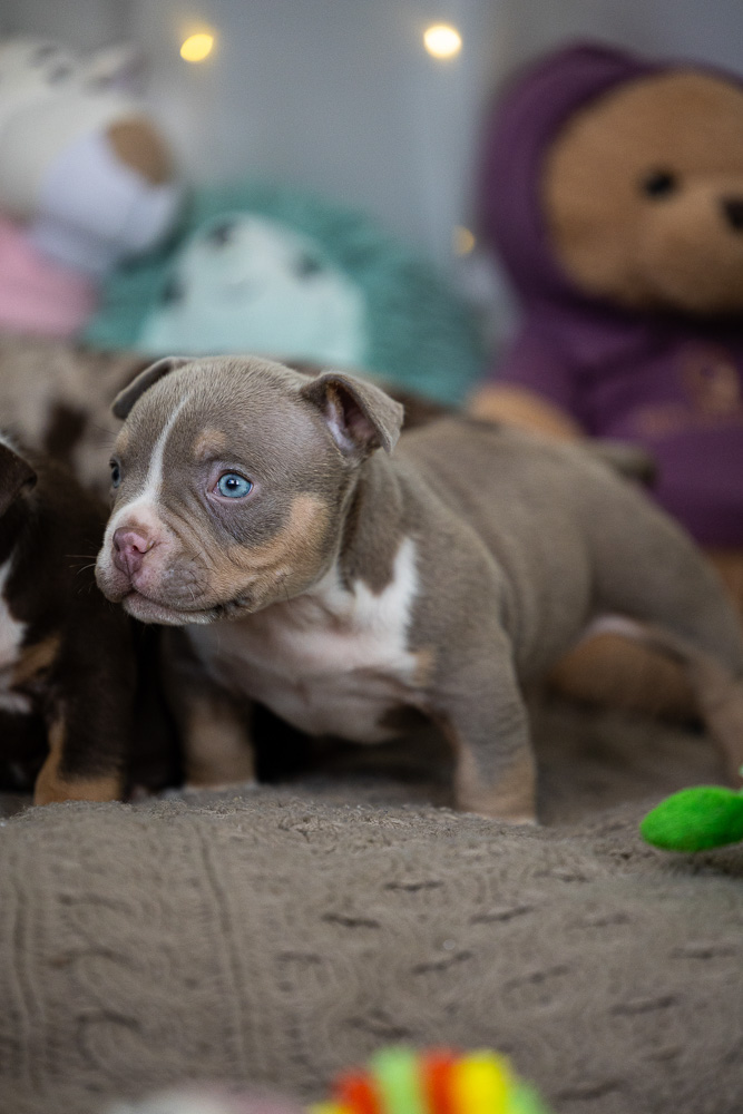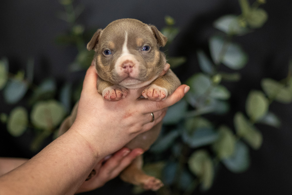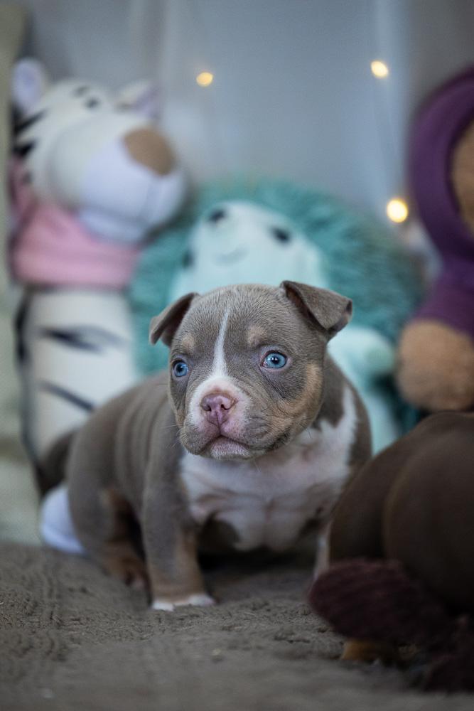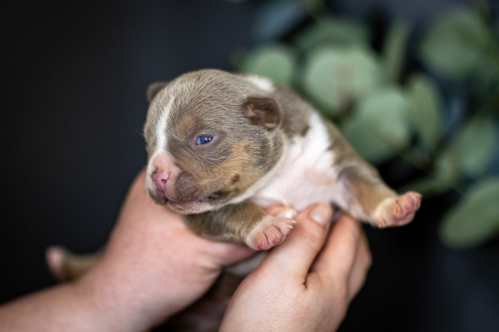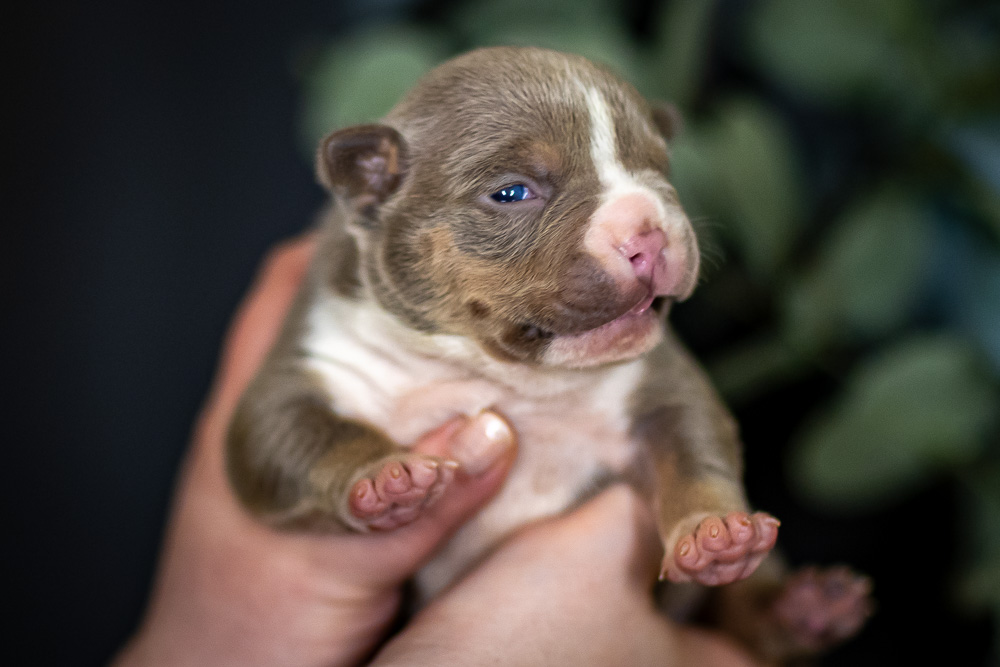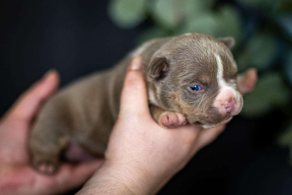 Этот малыш просто поражает своей мускулистостью, грудью и плечами. Он родился с удивительной физической структурой: очень приземистый, с массивным корпусом, который явно унаследовал от своего папы Кинки.