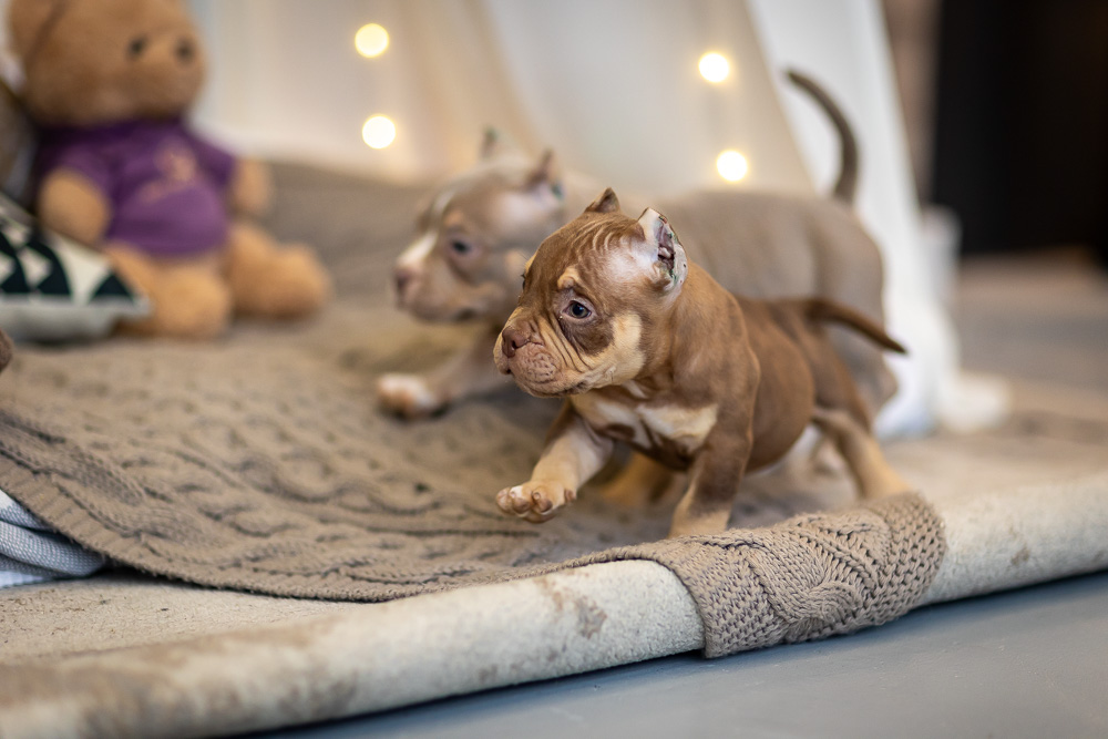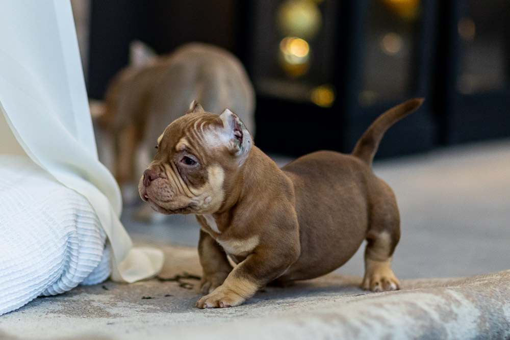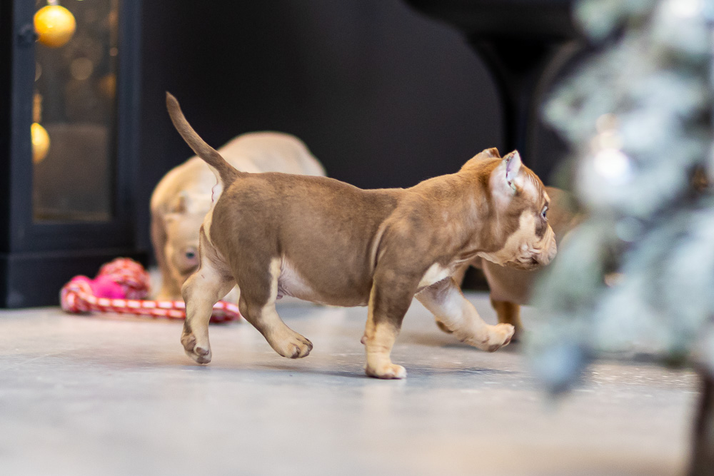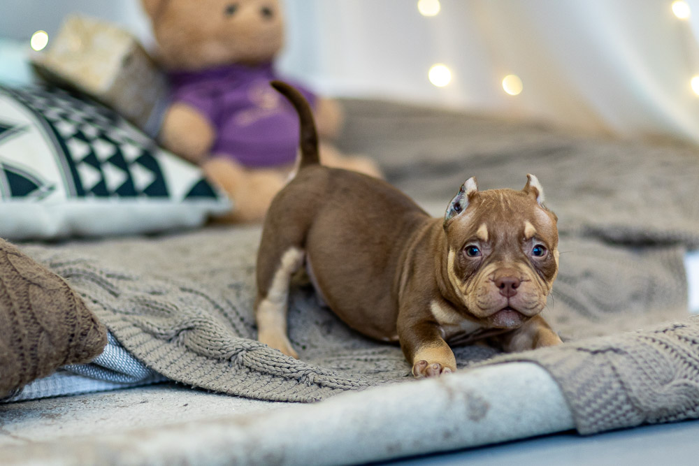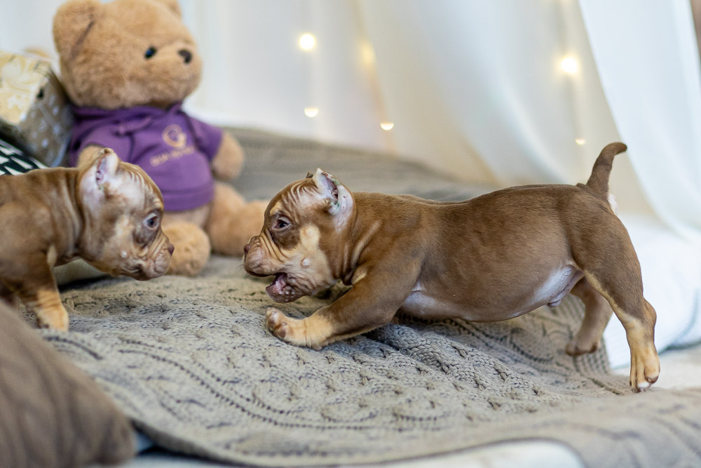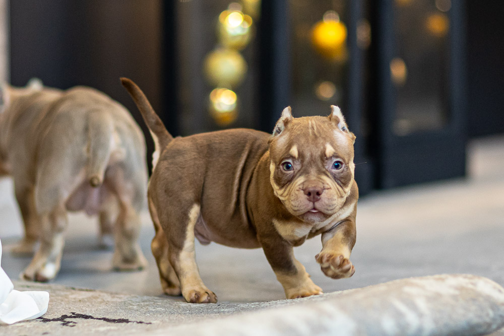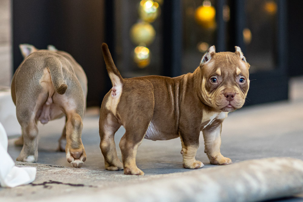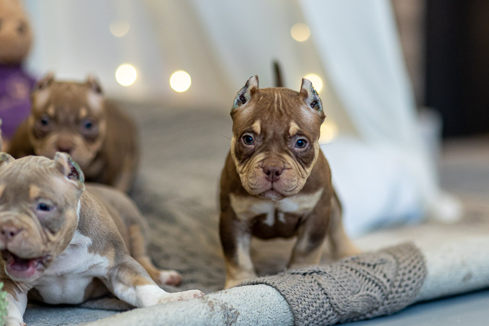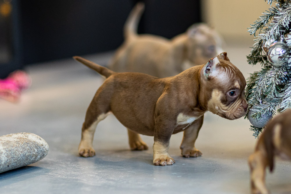 Этот мальчик – настоящая шоколадная находка! Он сочетает в себе атлетизм, выразительную мускулатуру и невероятную харизму. Уже в свои 5 месяцев он демонстрирует ярко выраженные объемы, мощные мышцы и крепкий костяк, что делает его перспективным представителем породы.