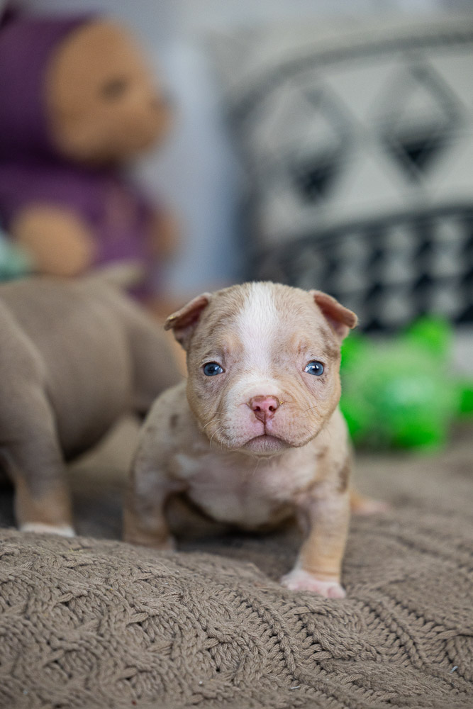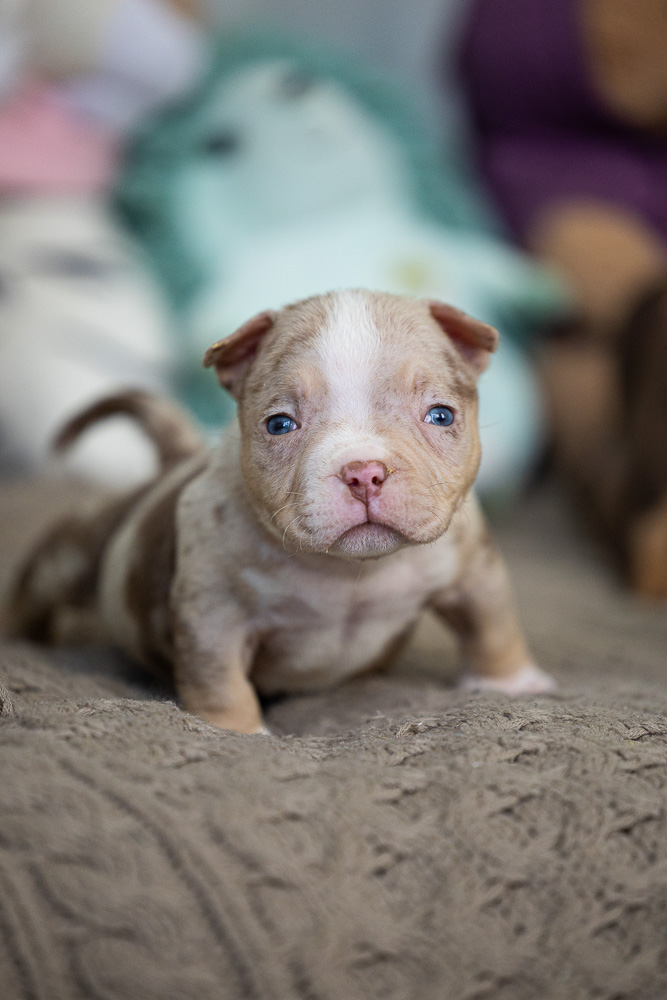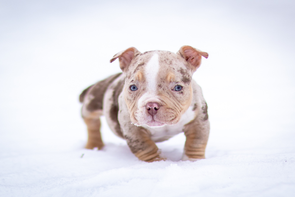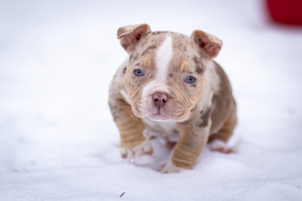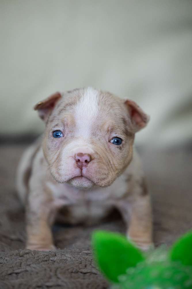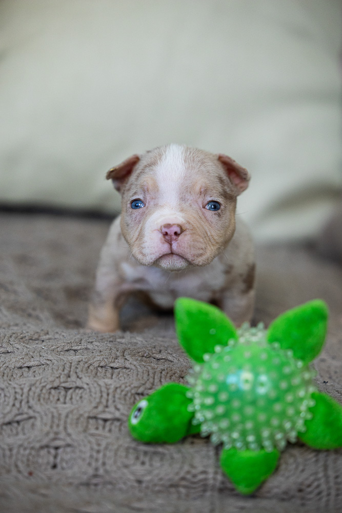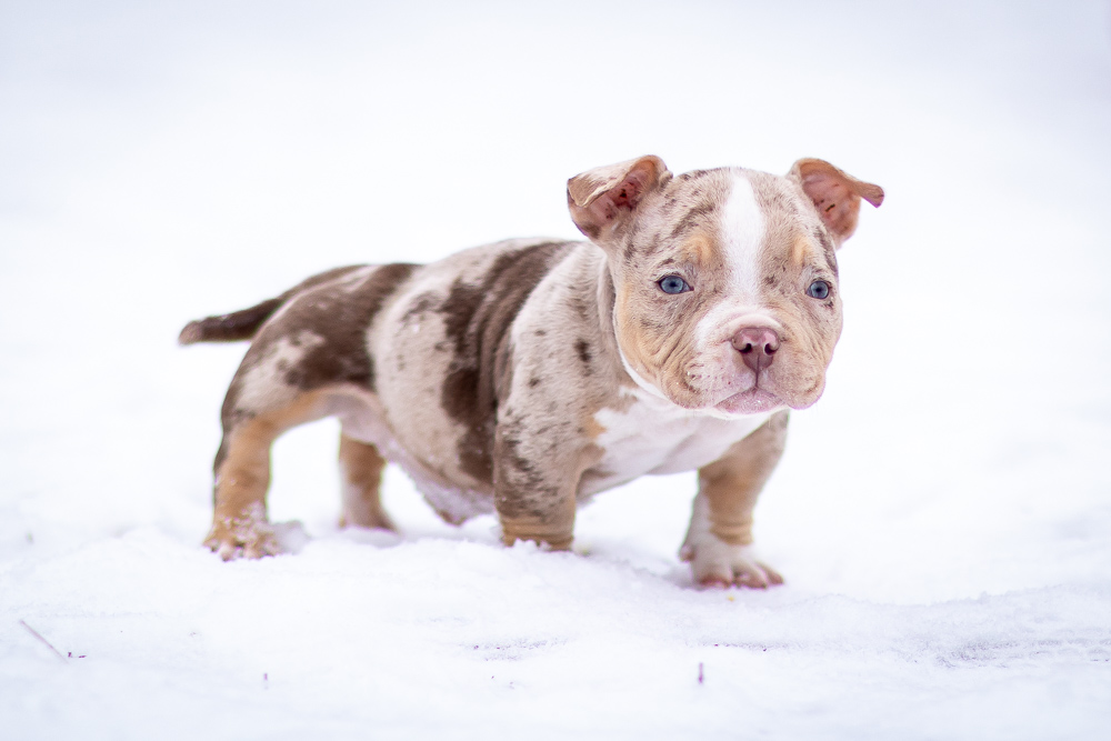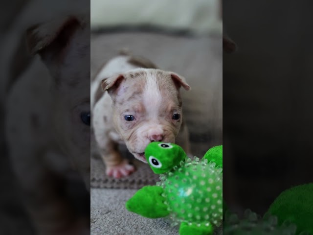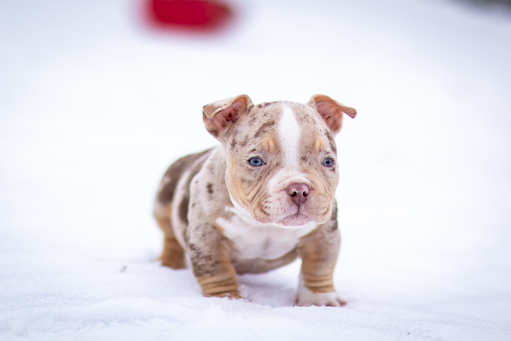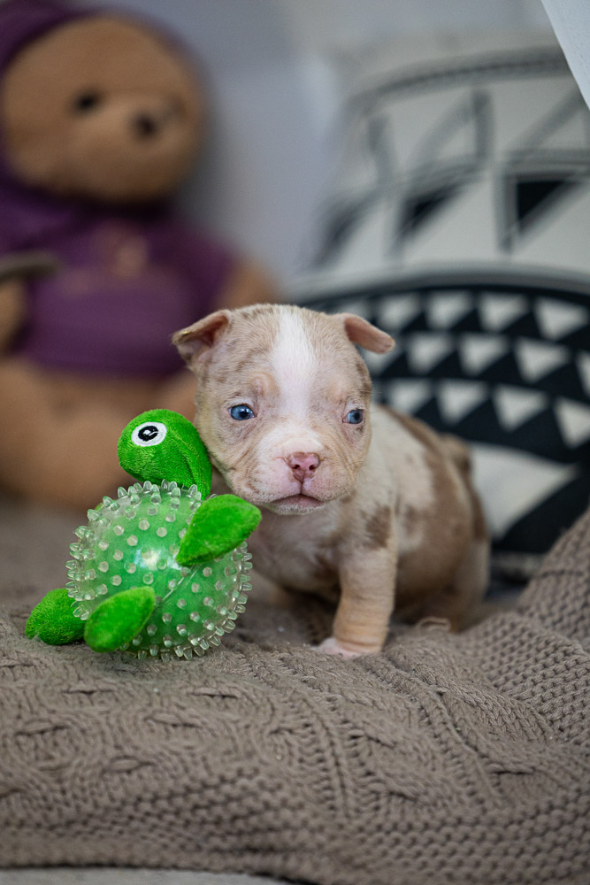 Доминик — миниатюрный малыш с уникальным окрасом шоколадный триколор мерль.
