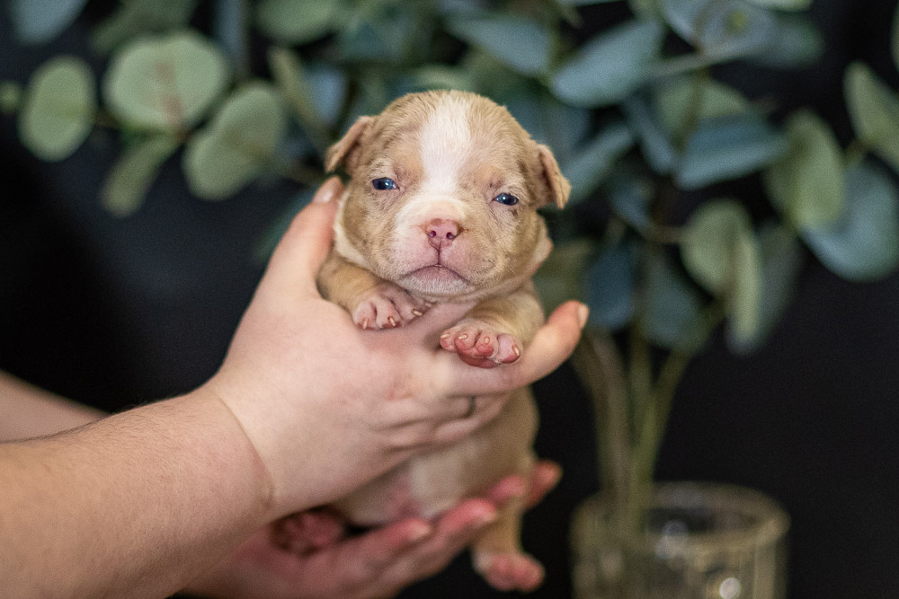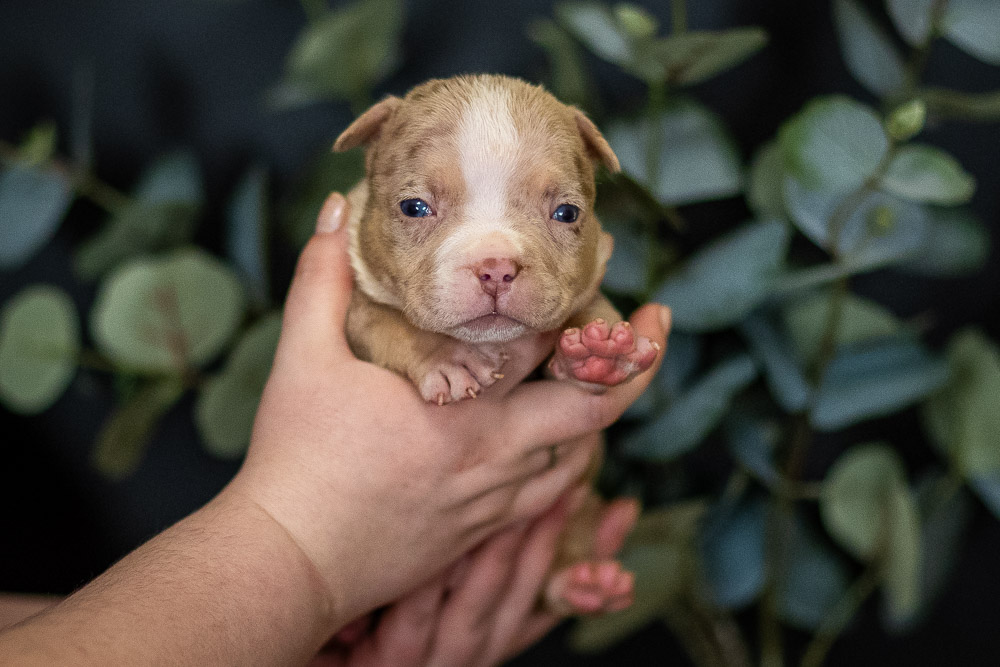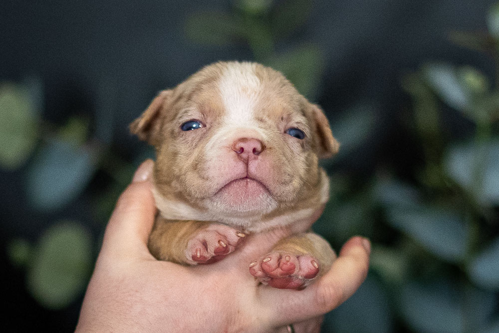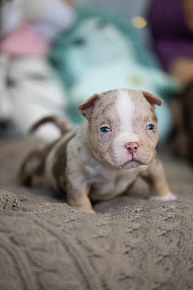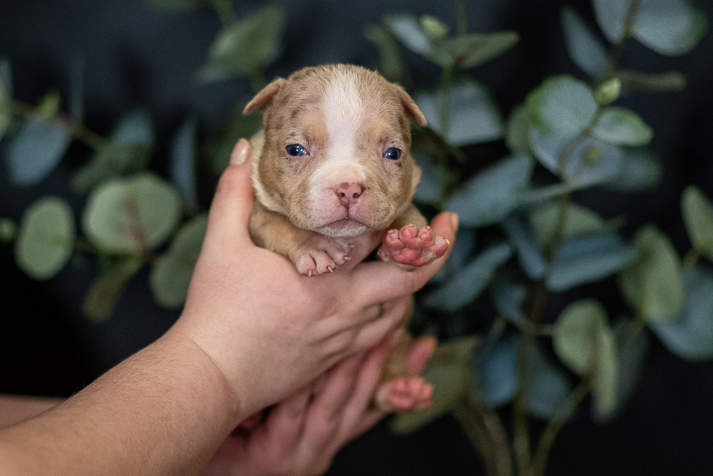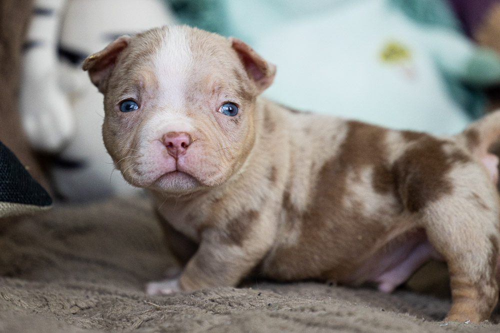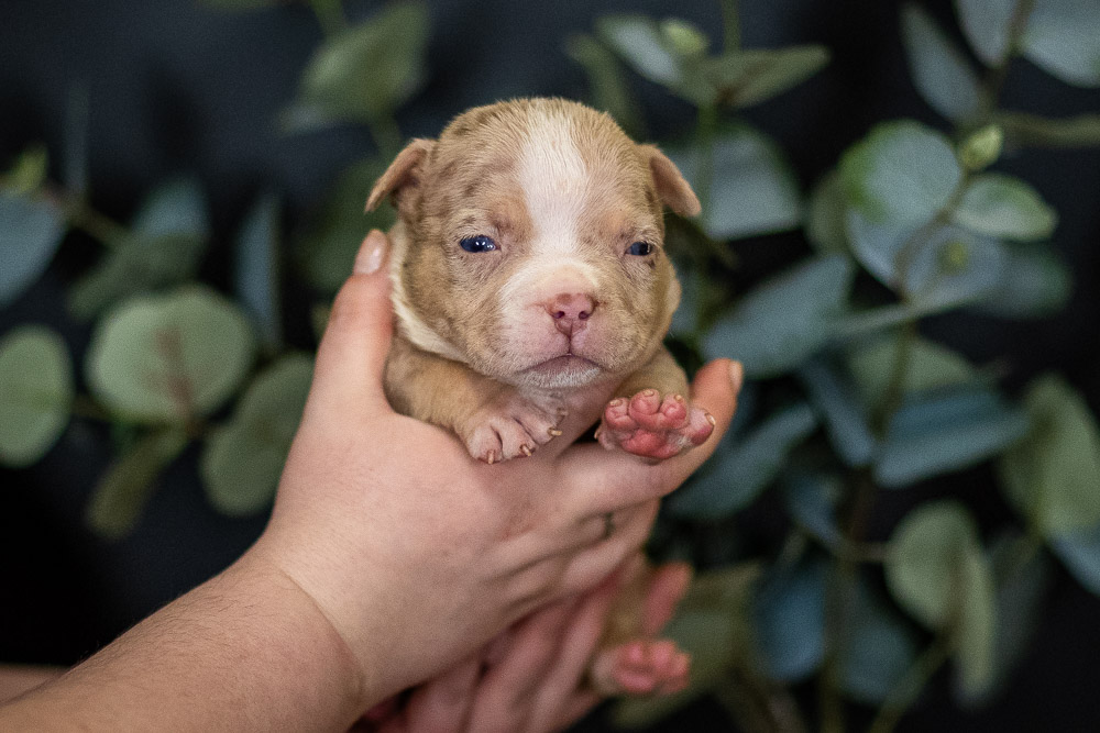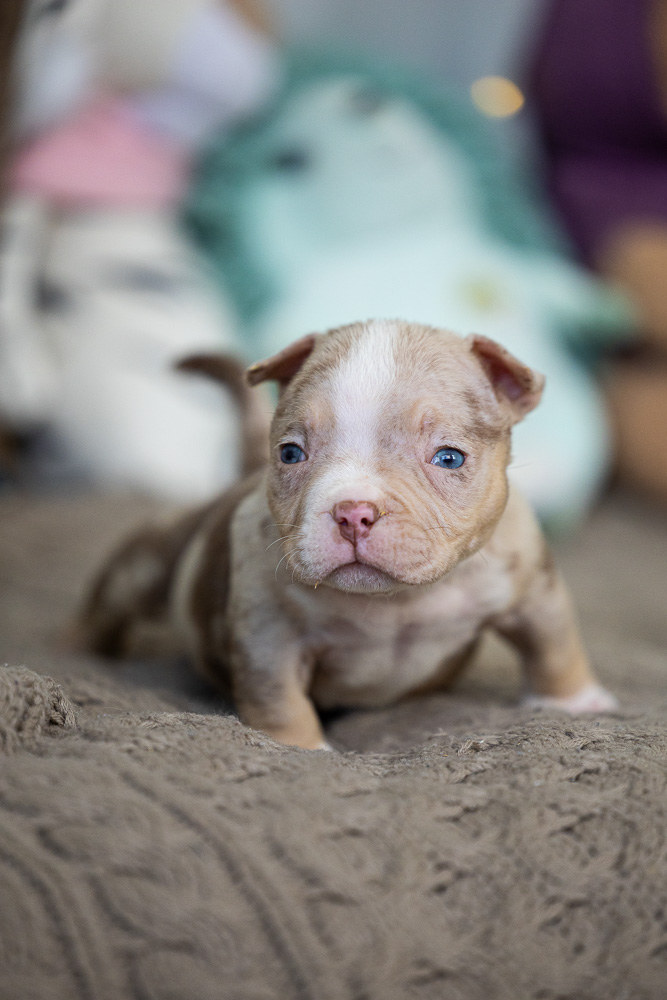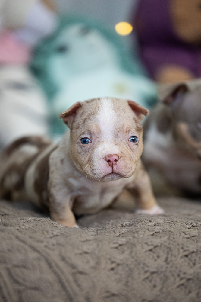 Доминик — миниатюрный малыш с уникальным окрасом шоколадный триколор мерль.