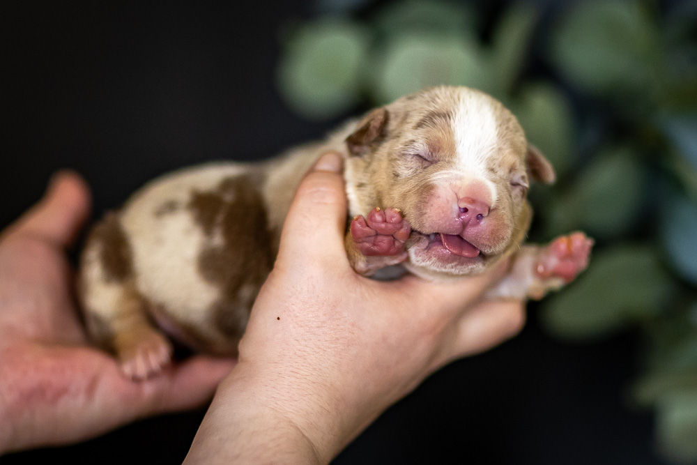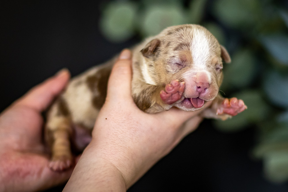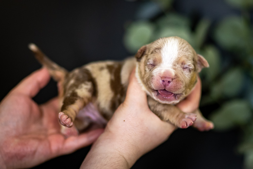 Познакомьтесь поближе с сыночком Кинки и Галадриель — это Доминик - очень нарядный мальчик, в редком окрасе — шоколадный триколор мерль, что делает его ещё более уникальным среди ценителей породы!