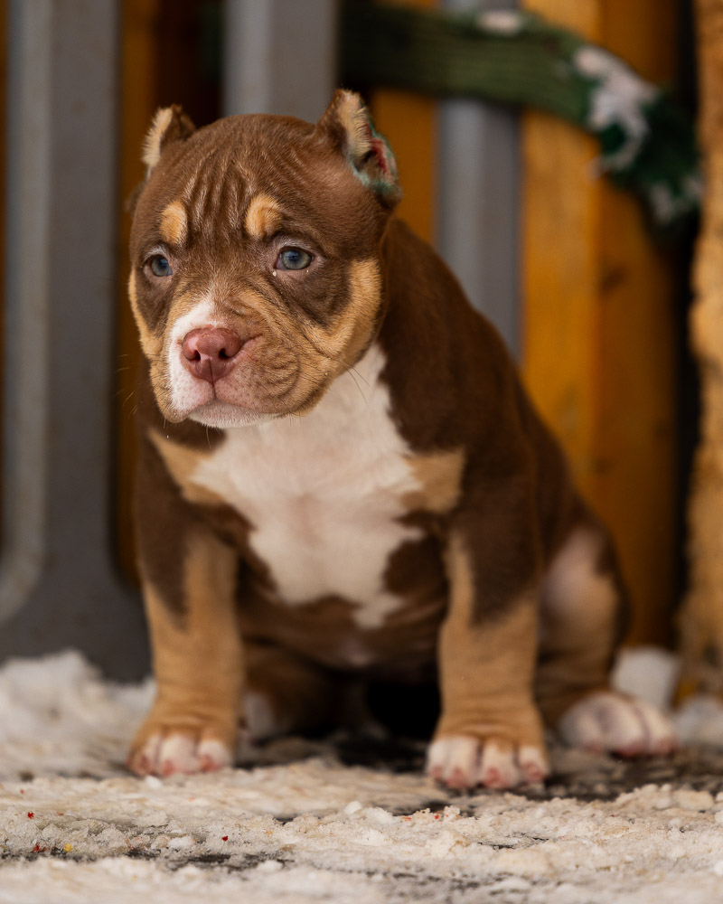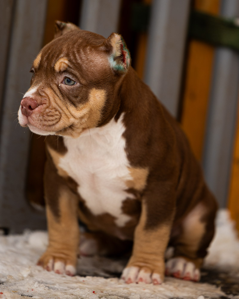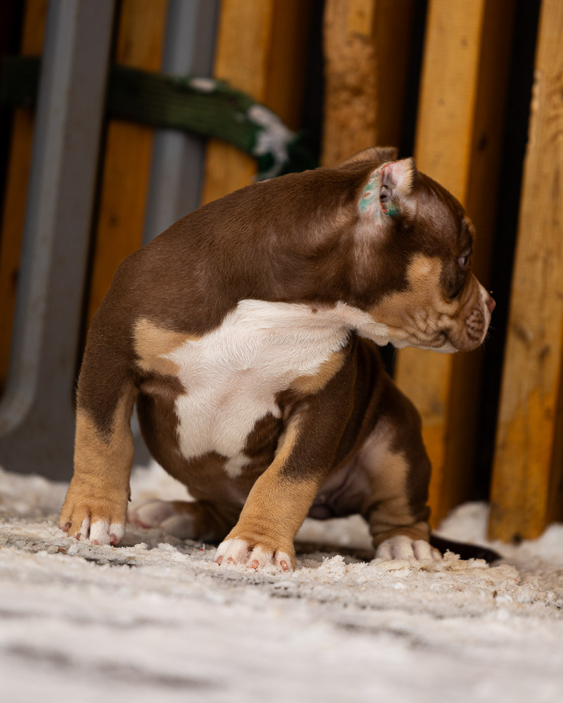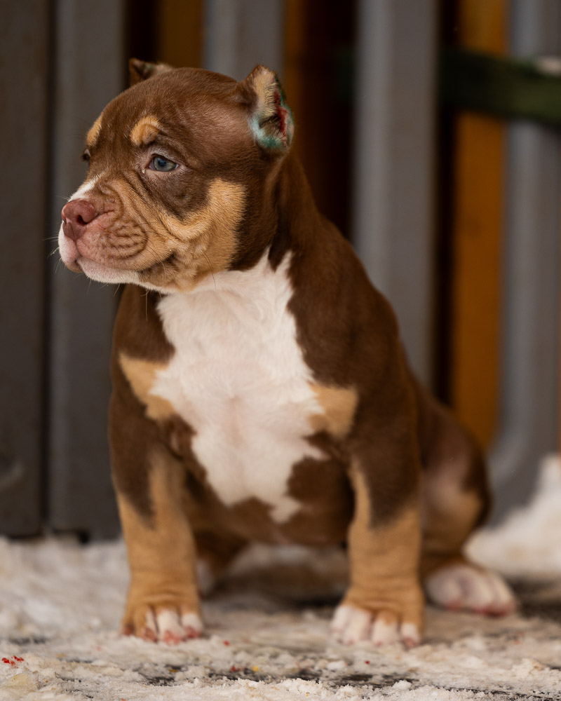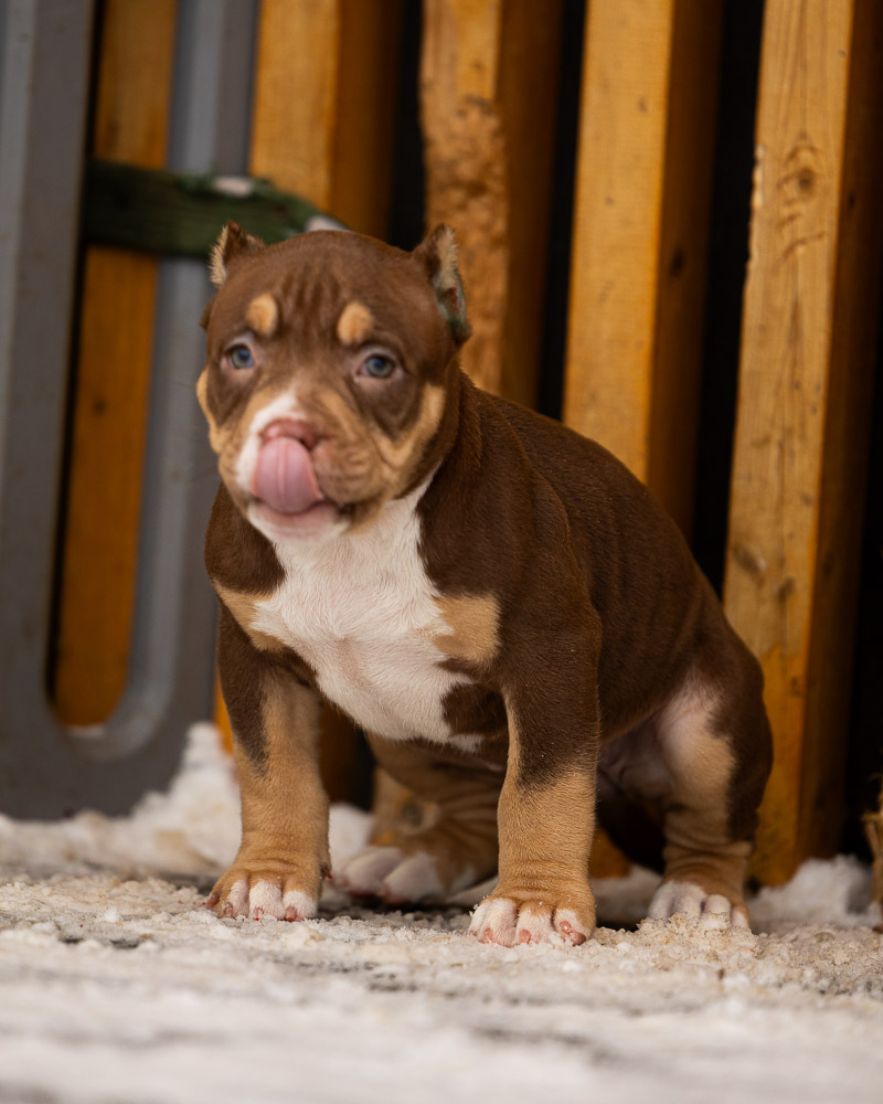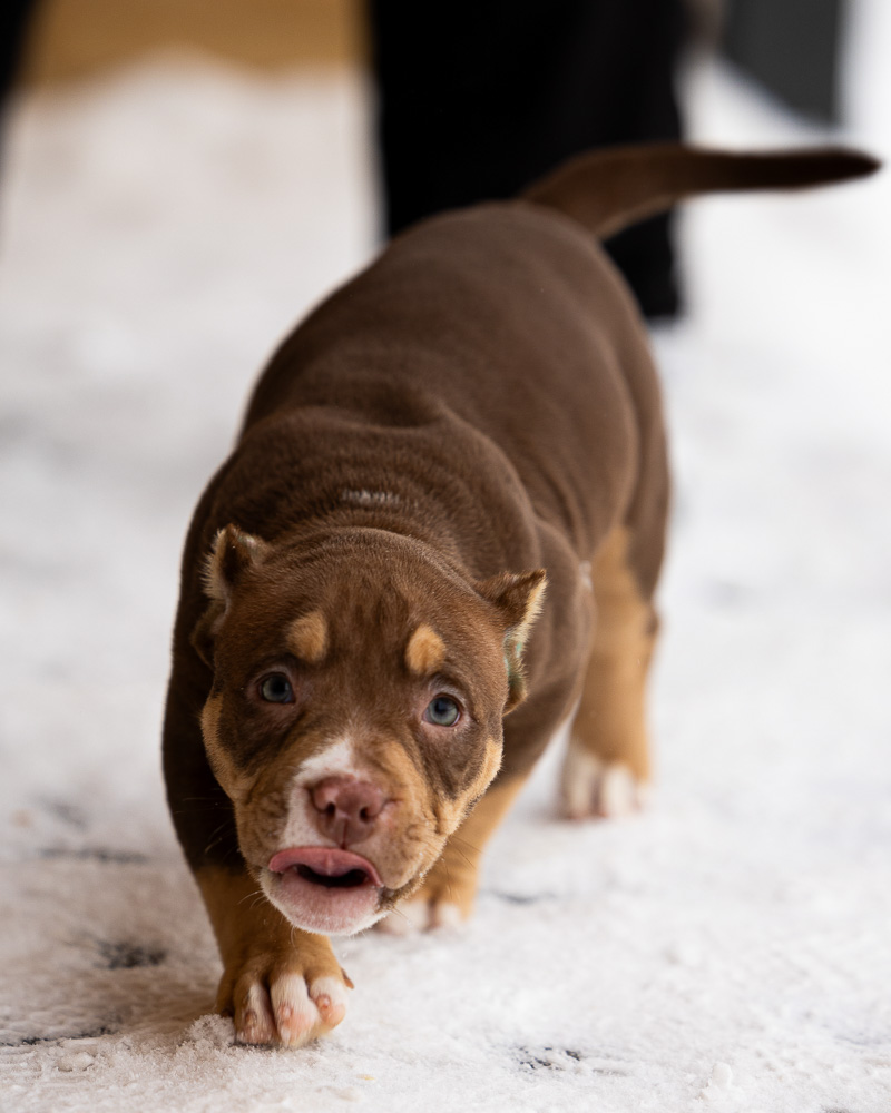 А папа Кинки, мощный микро булли из Франции, отличается уникальной физической формой и выдающимся потомством.