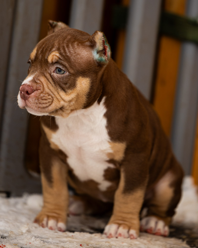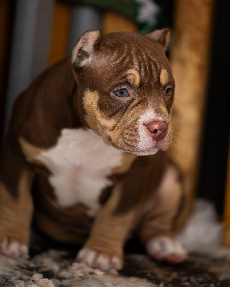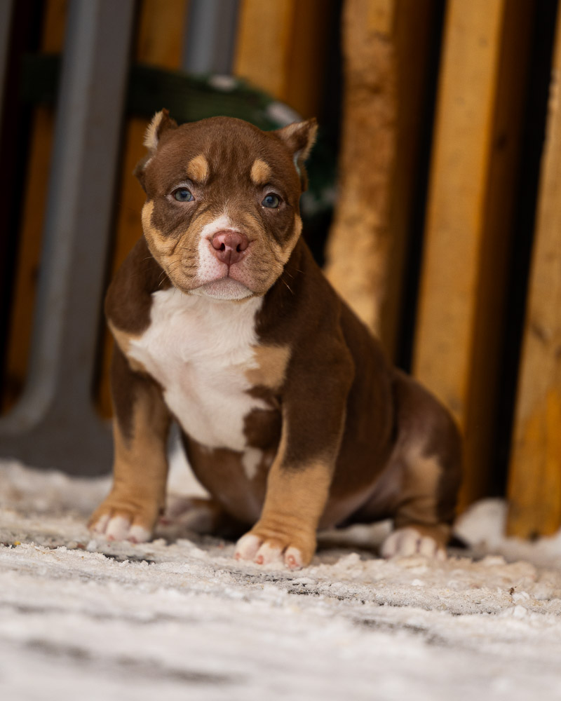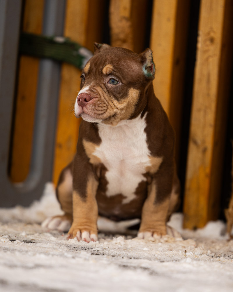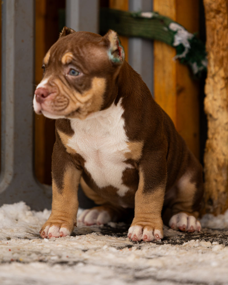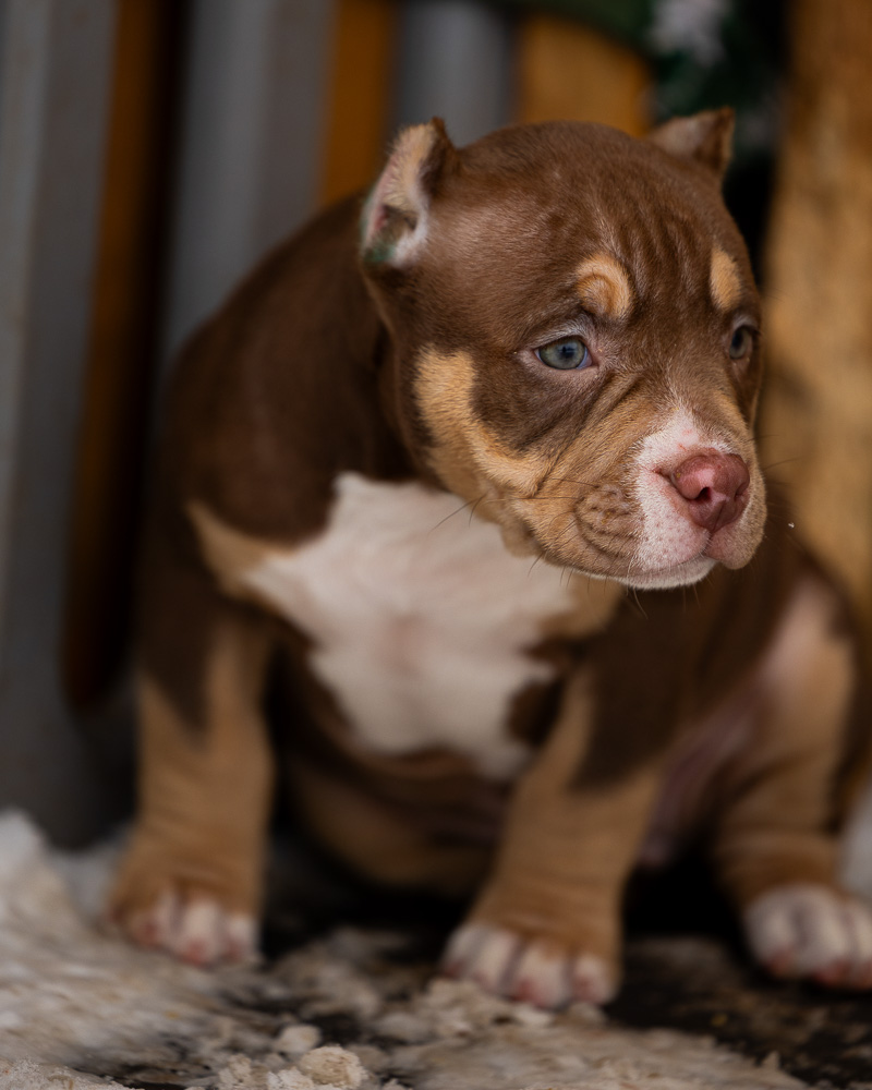 А папа Кинки, мощный микро булли из Франции, отличается уникальной физической формой и выдающимся потомством.