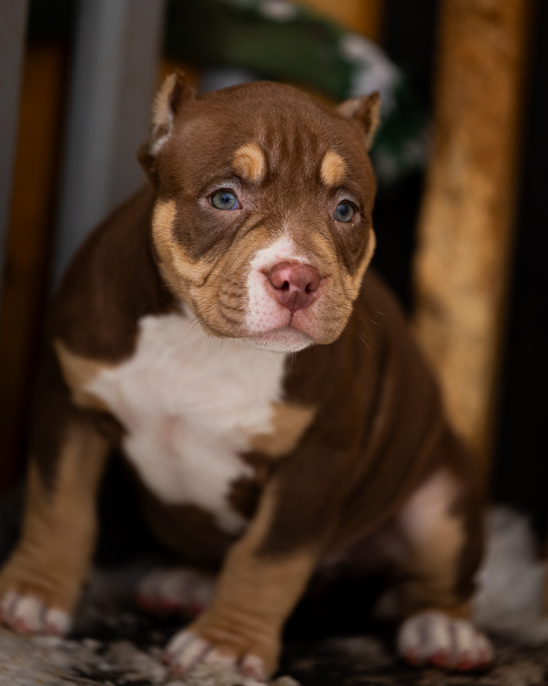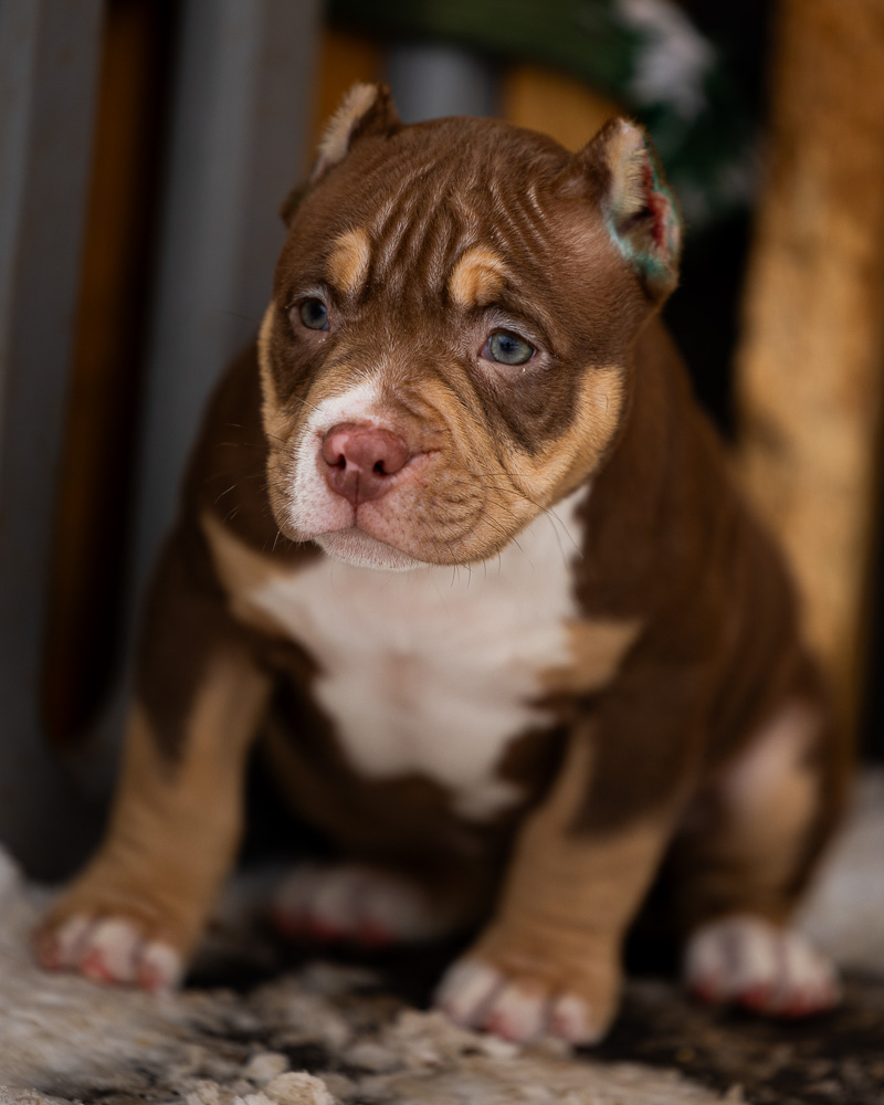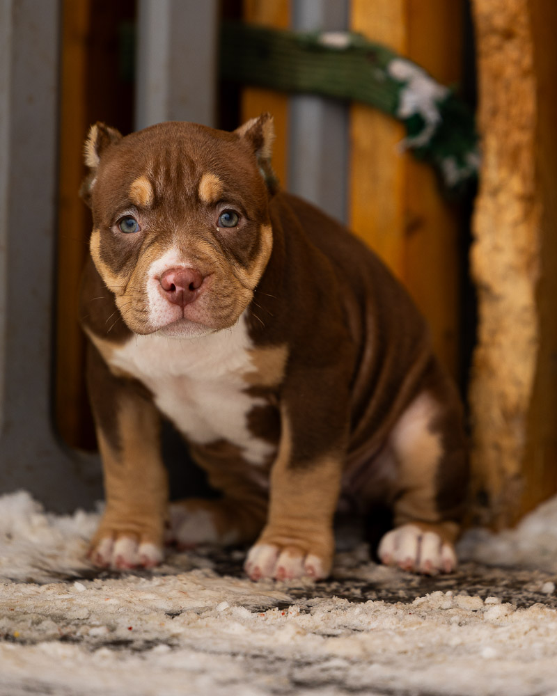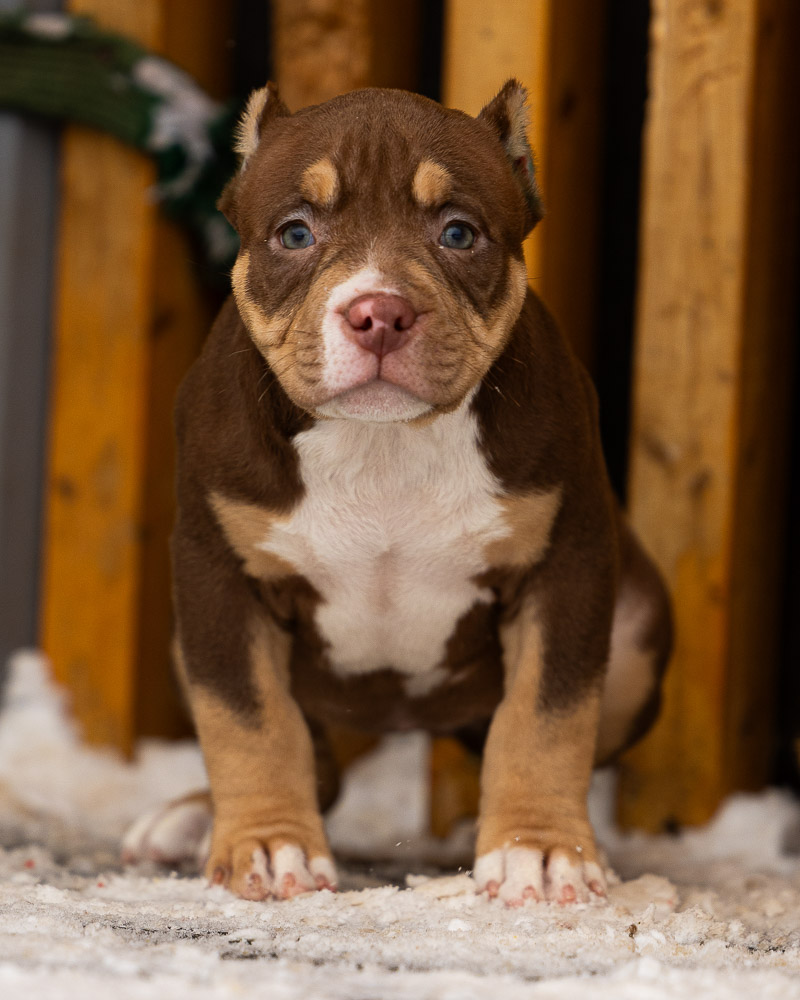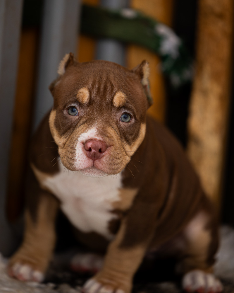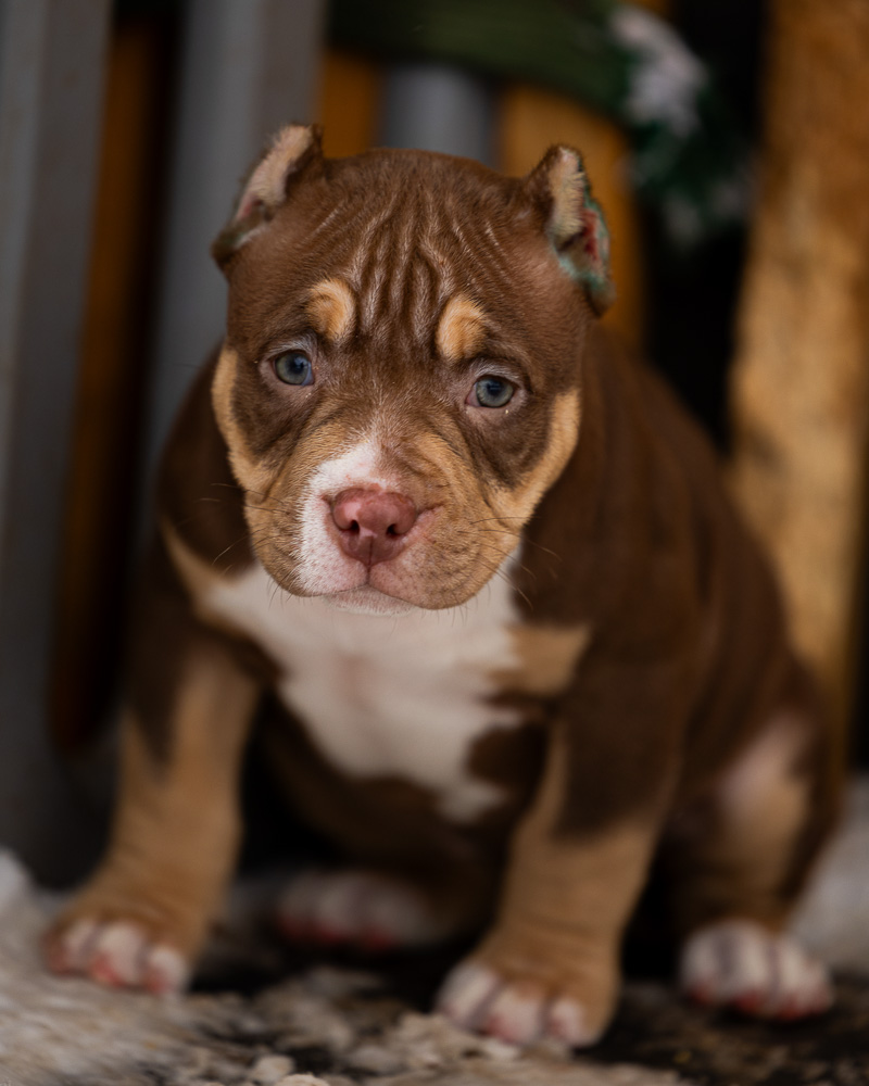 А папа Кинки, мощный микро булли из Франции, отличается уникальной физической формой и выдающимся потомством.