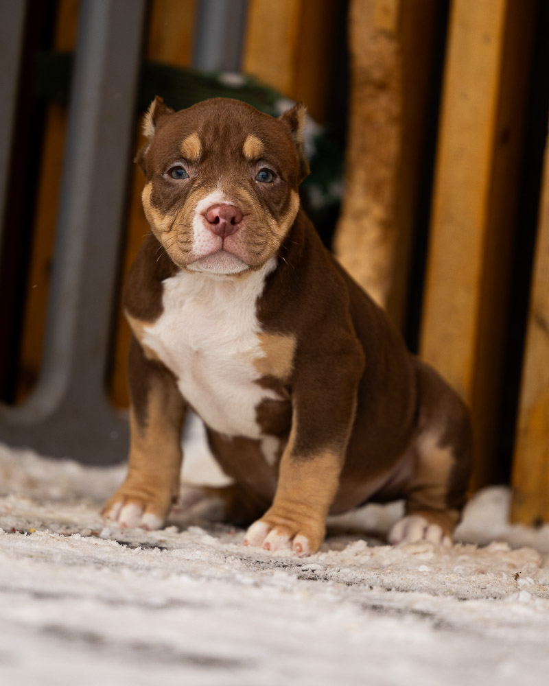 Эта малышка — сочетание лучших черт обеих линий: уверенная и гармоничная внешность, мускулистое телосложение и добрый, покладистый характер.