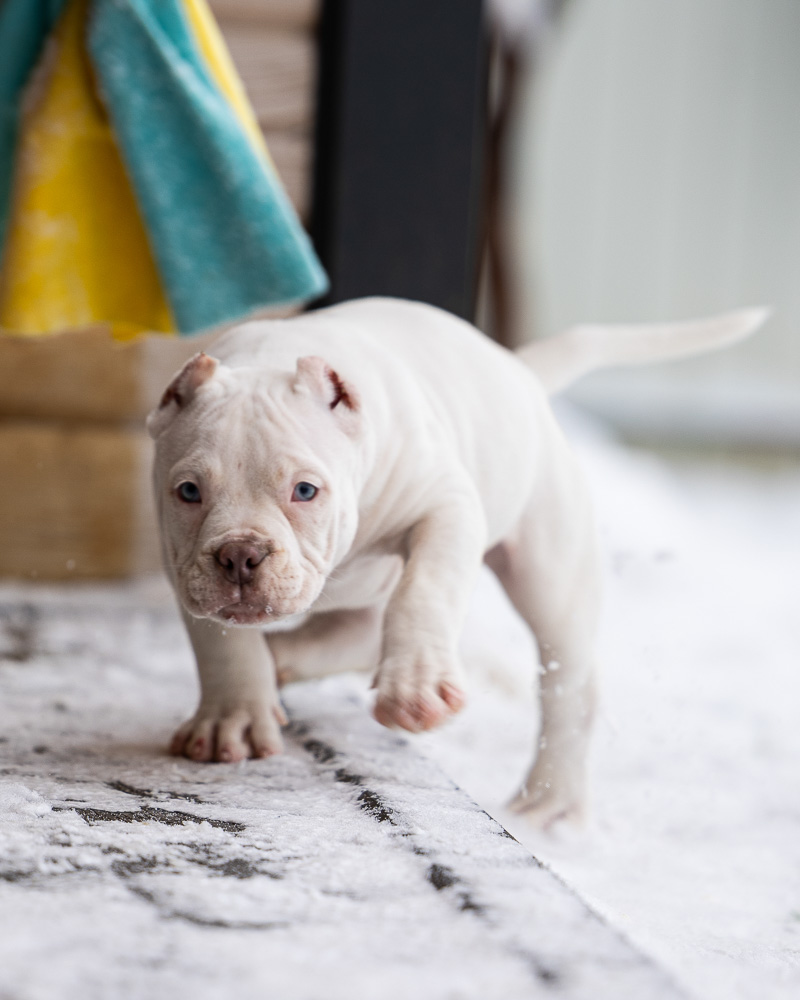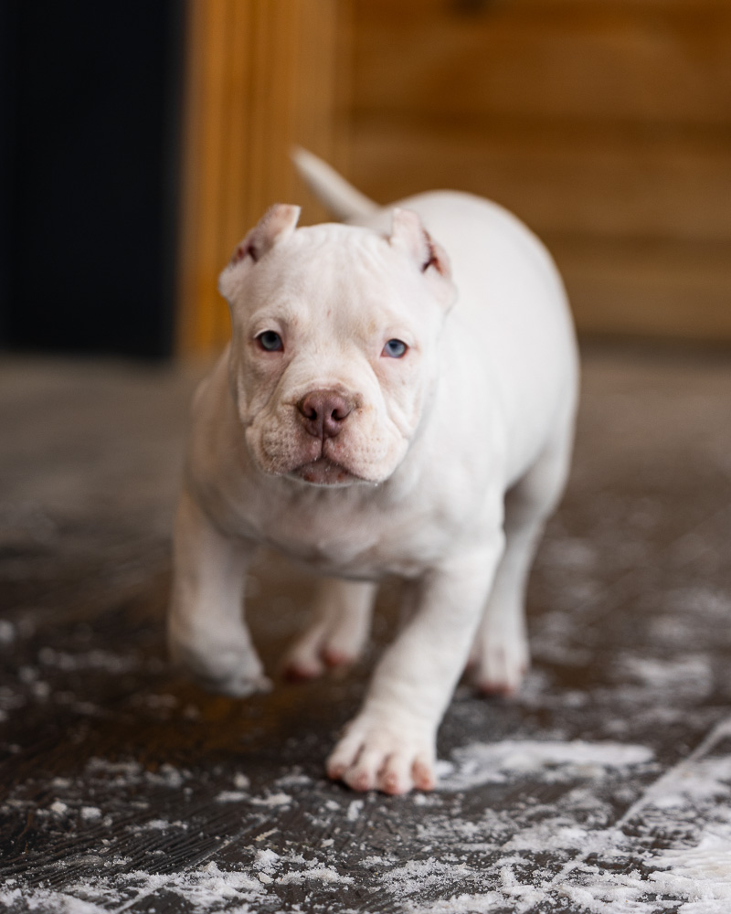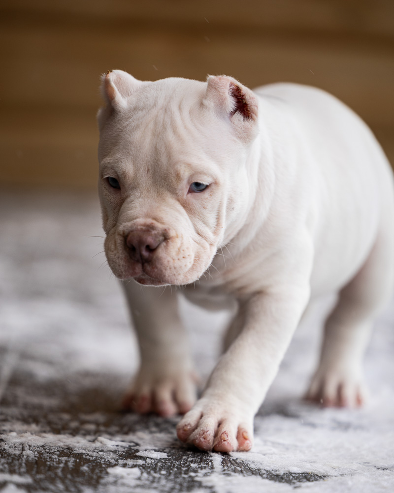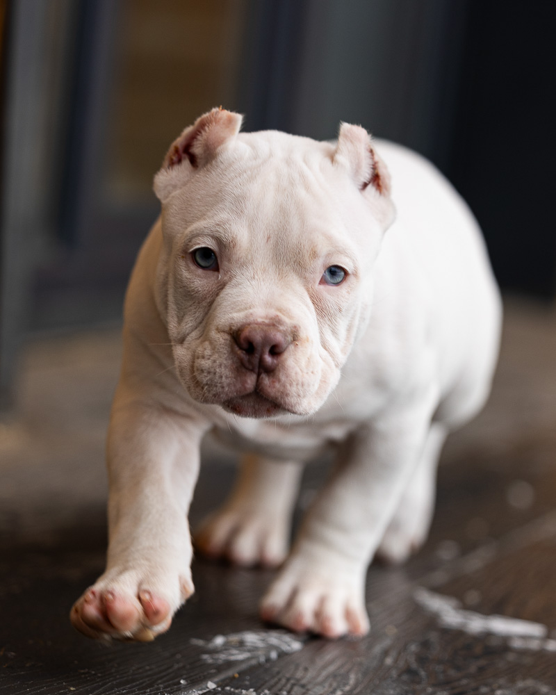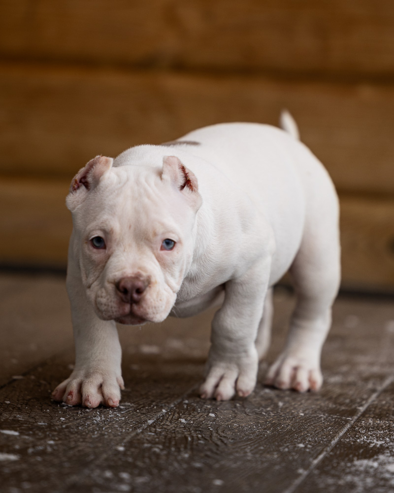 Его родословная — настоящая гордость нашего питомника: Папа Кинки — мощный микро булли родом из Франции.