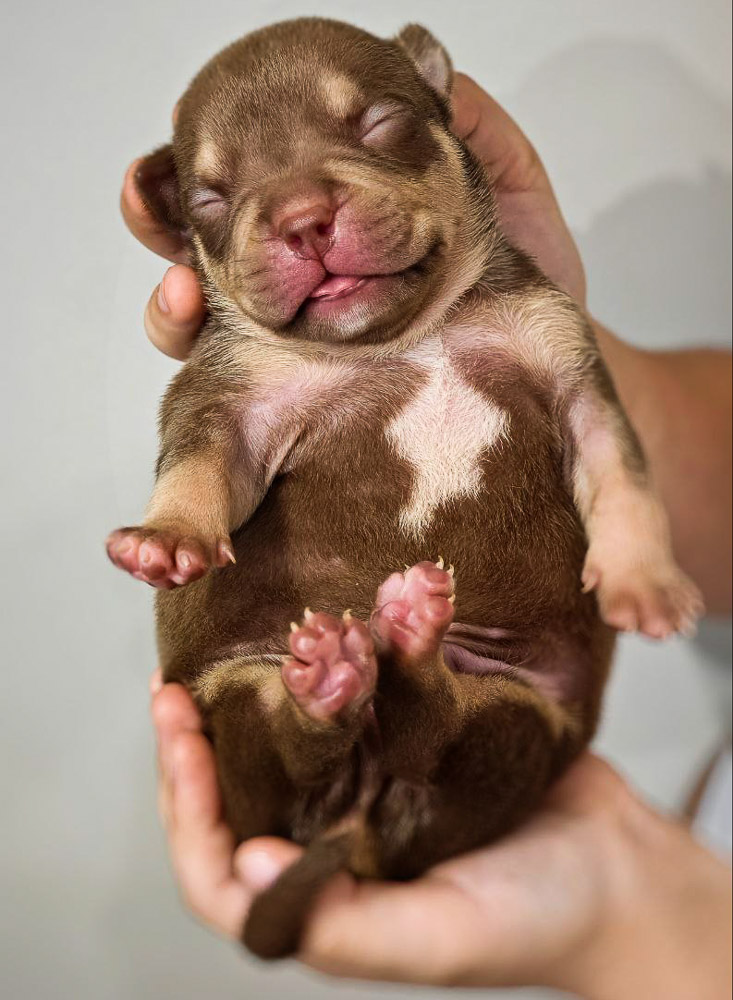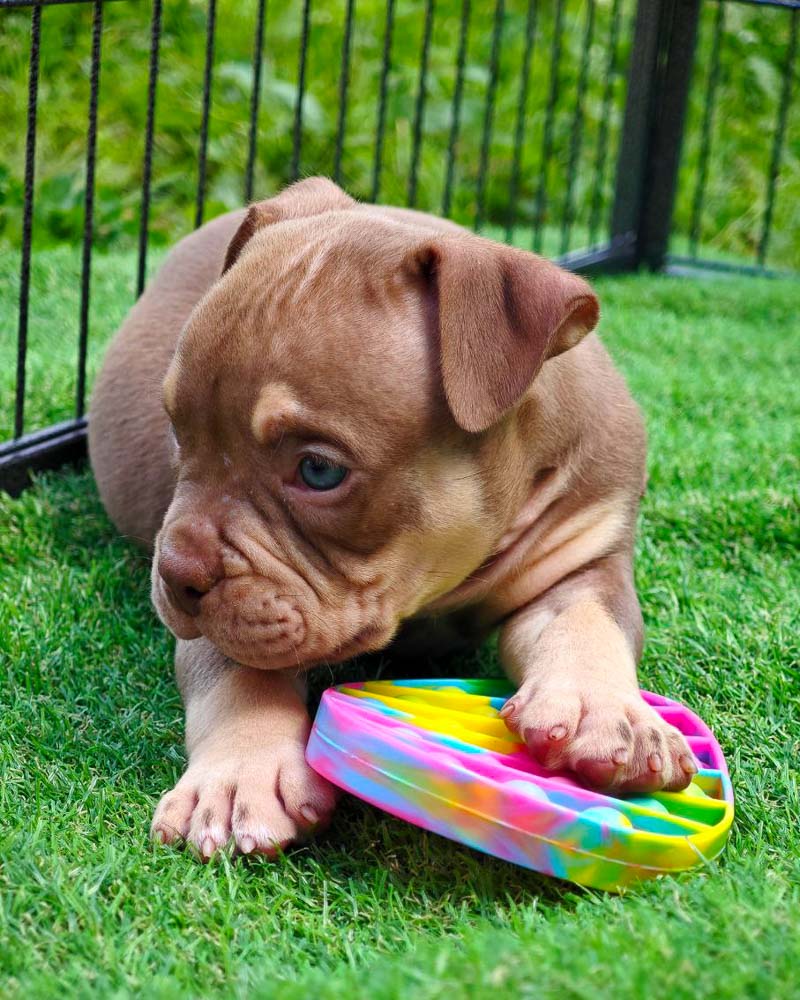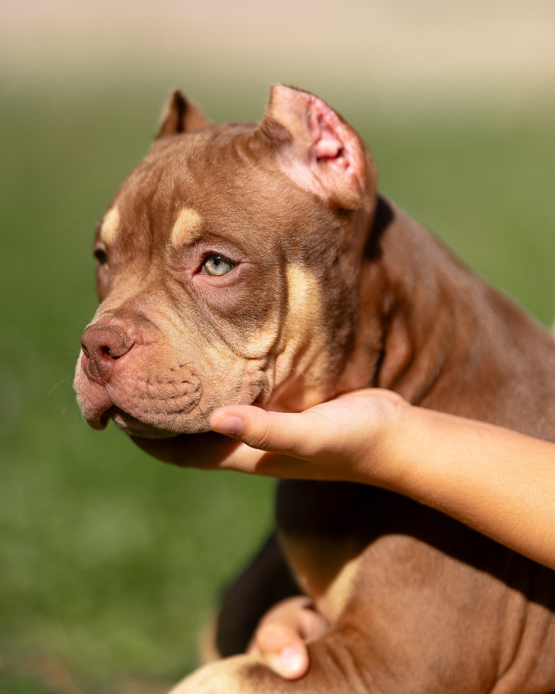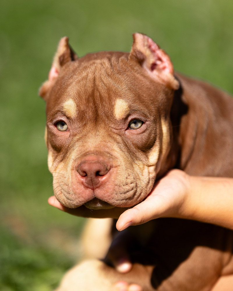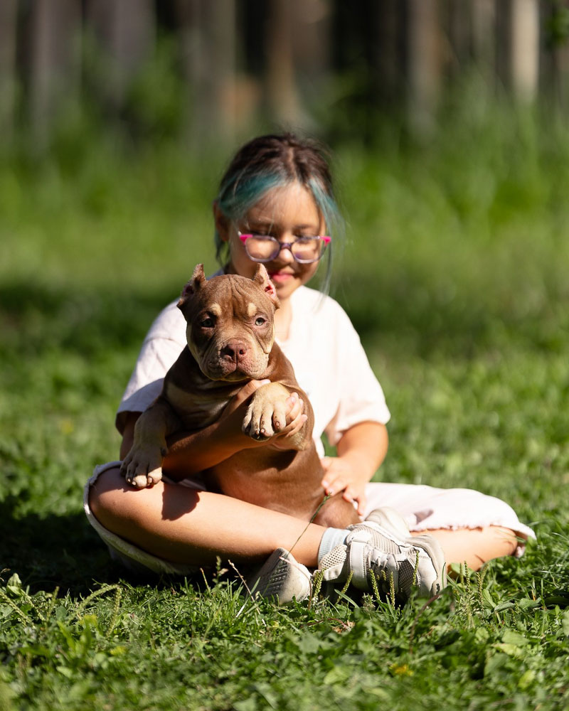 Познакомьтесь со Сникерсом, очаровательным щенком американского булли, который мгновенно завоевывает сердца. Этот добродушный малыш — самый крупный в помёте, он невероятно ласков и обожает внимание. Сникерс — не задира, он предпочитает мирное общение и спокойствие. Его лидерство проявляется только в одном — он всегда первый у миски с едой. Но больше всего на свете Сникерс любит уют, тепло и ваши руки, где он чувствует себя самым счастливым.